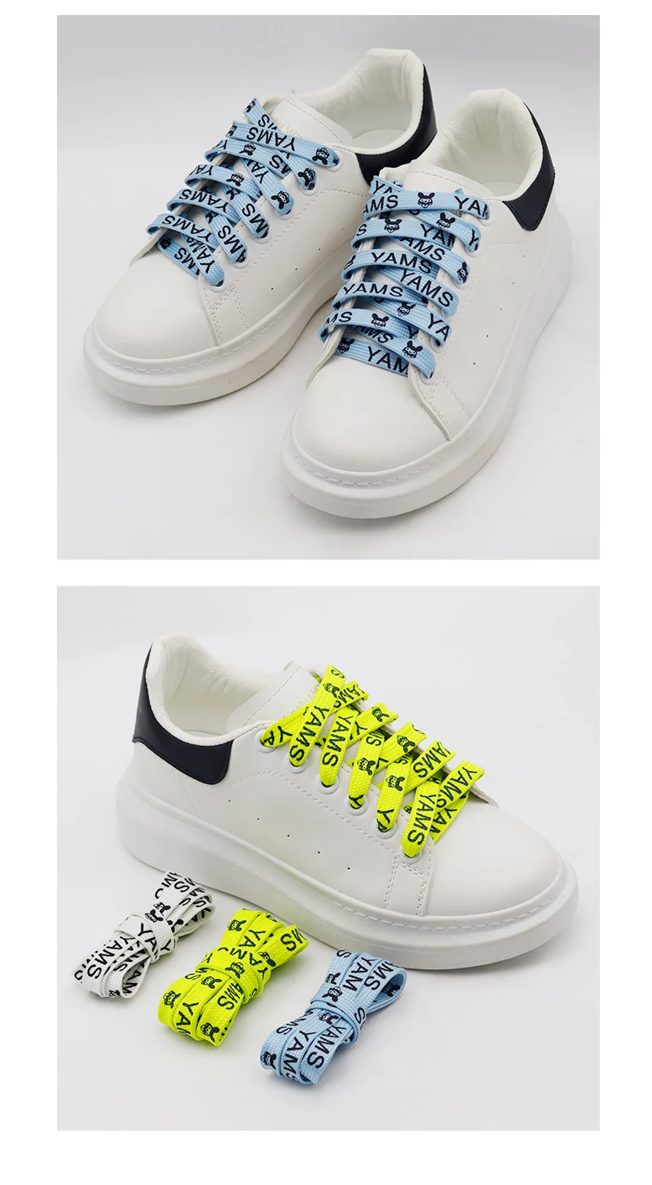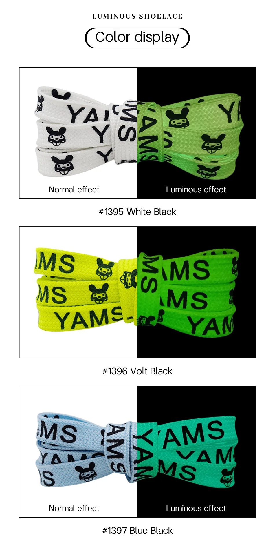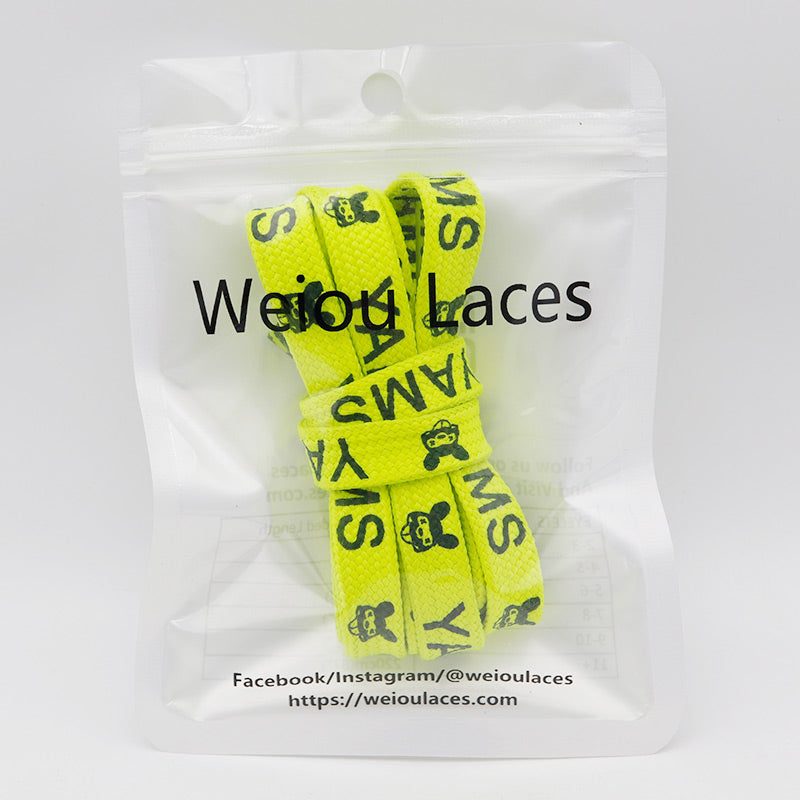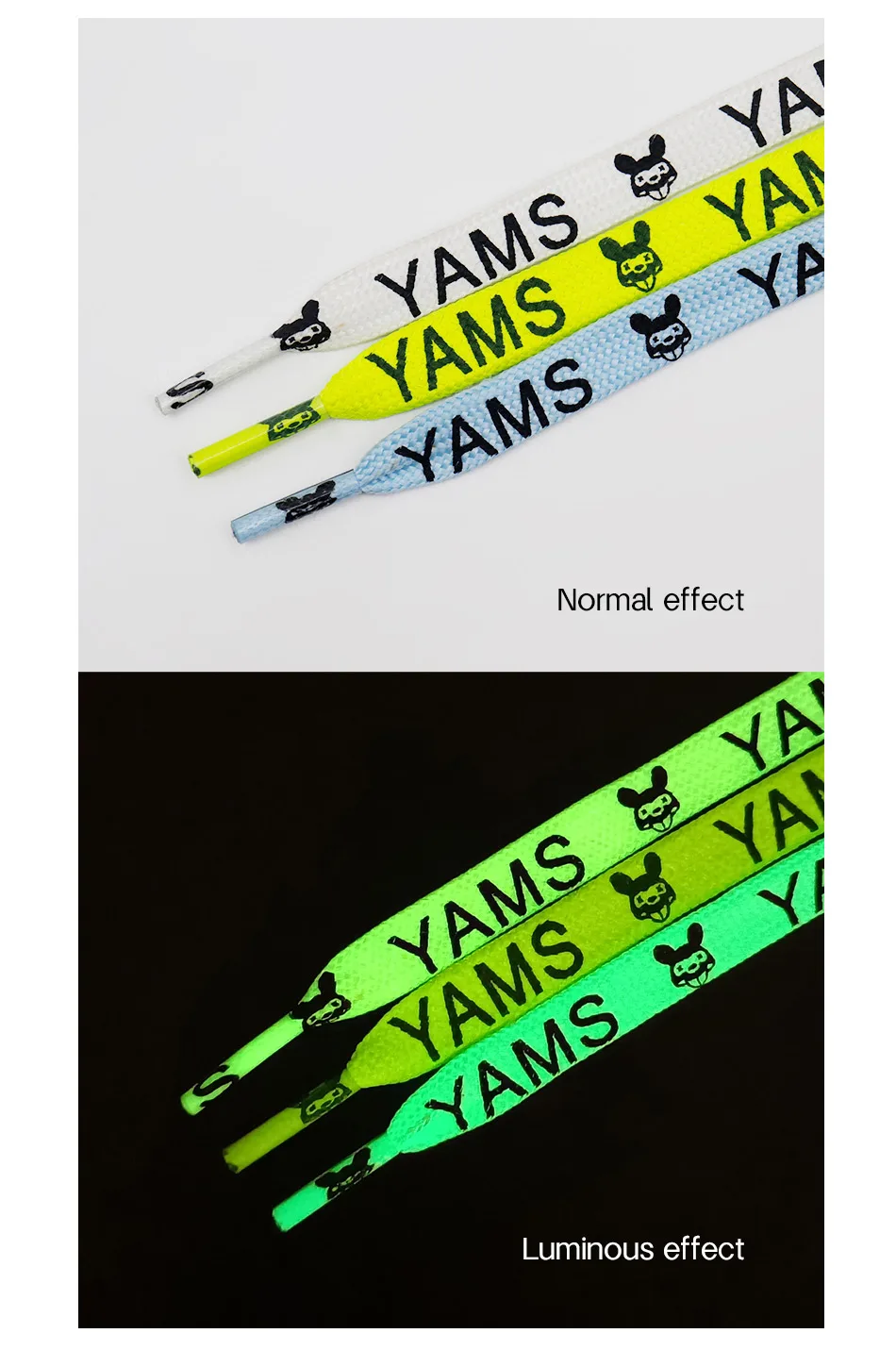 3 Colors Flat Luminous Printed Lettering"YAMS"Trendy Text Symbol Fluorescent Shoelaces Night Glow 1cm Wide Night Party Men&Women