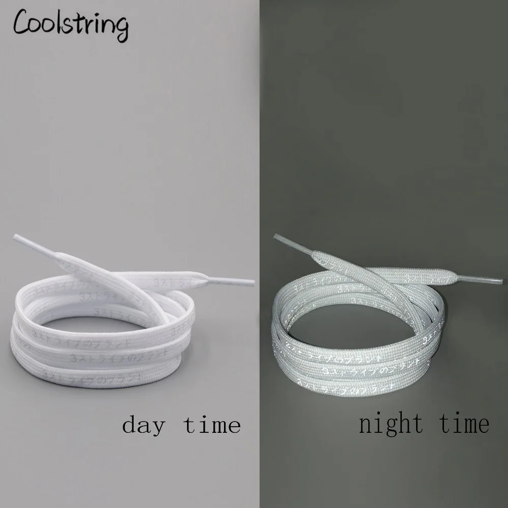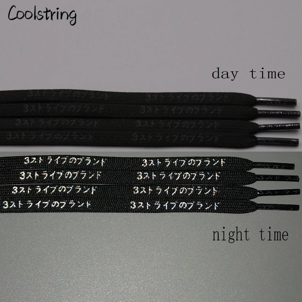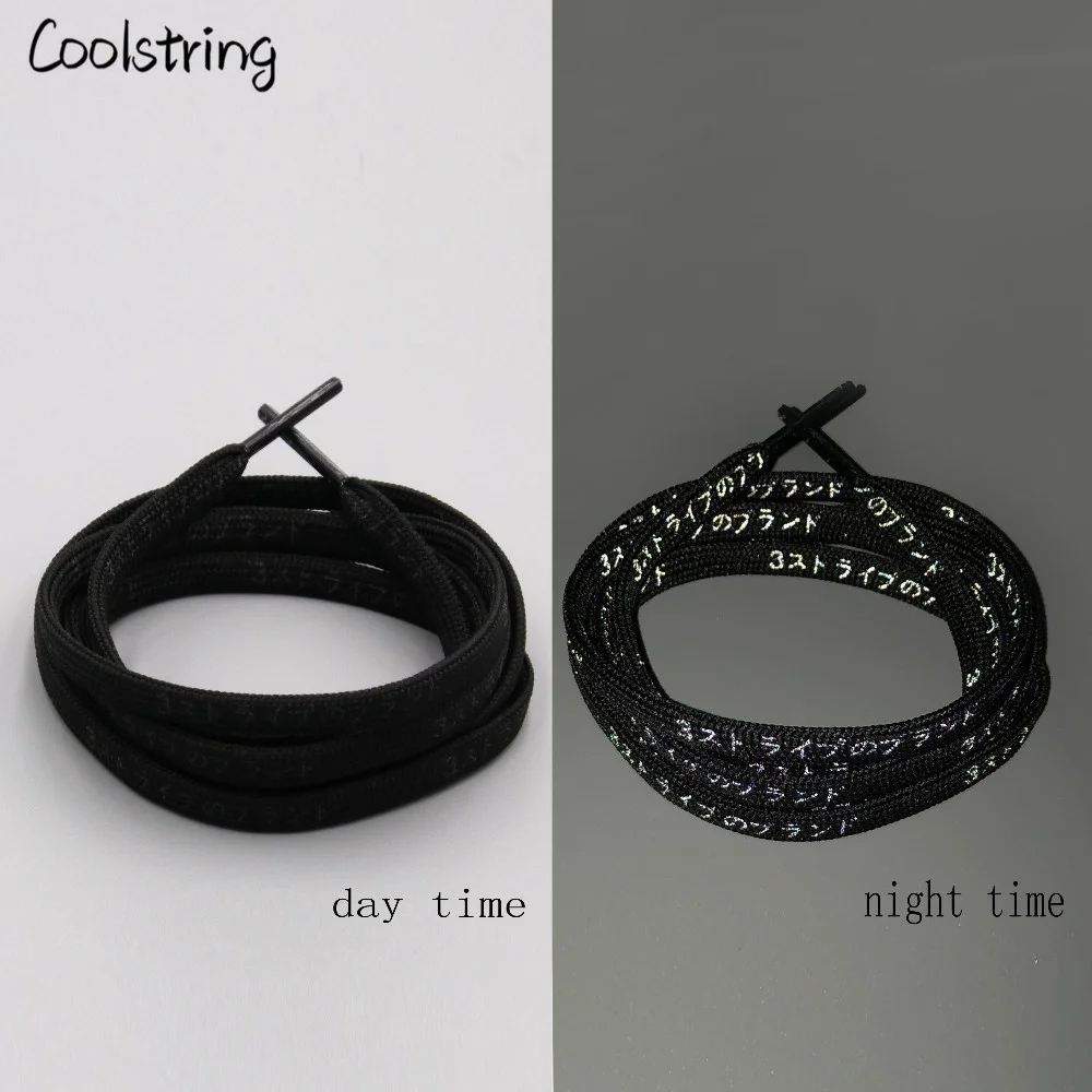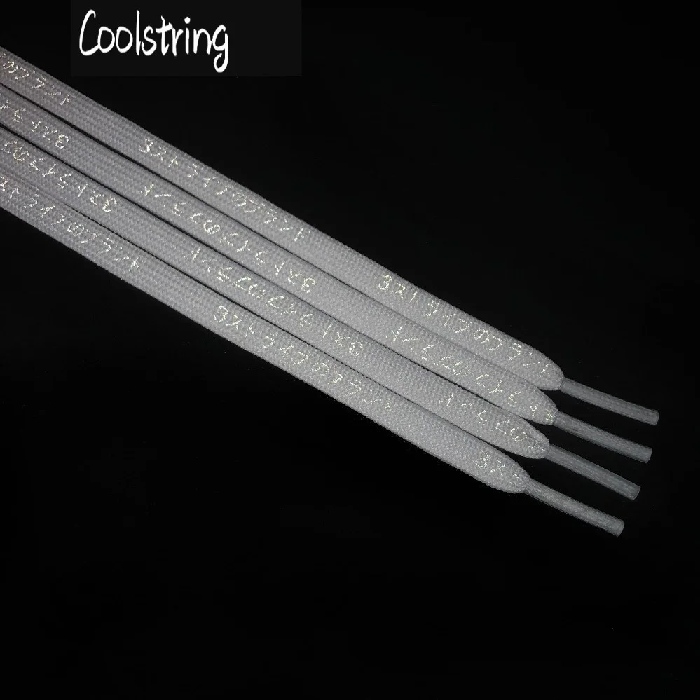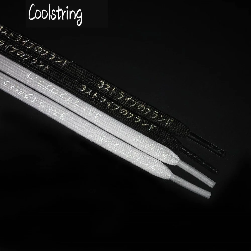 3M Reflective Letter Flat Printed Katakana White Black Japanese Shoelaces Flashy Bootlaces Patterns