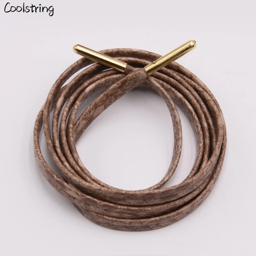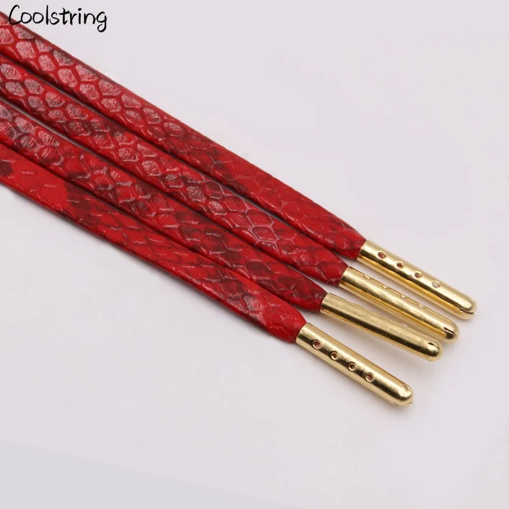 Coolstring Flat Snakeskin Shoe Laces White Red Grey Brown Luxury Leather LE ShoeLaces With Gold Metal Aglets For Sneakers Sports Support Dropshipping