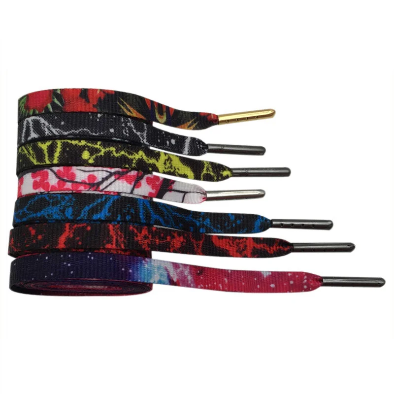 6 Designs Hot Shoestring with Tips Printing Flat Galaxy 60-180cm Shoelaces For Dress Shoes