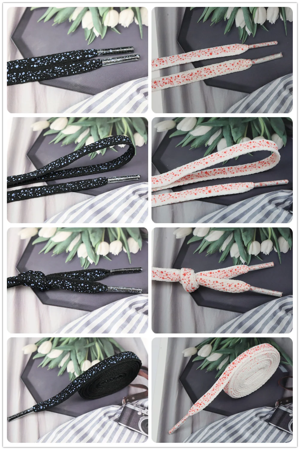 7MM Flat Laces Black Red Spray Spot Printing Shoelaces Art Inkjet Cord Bulk Order With Custom