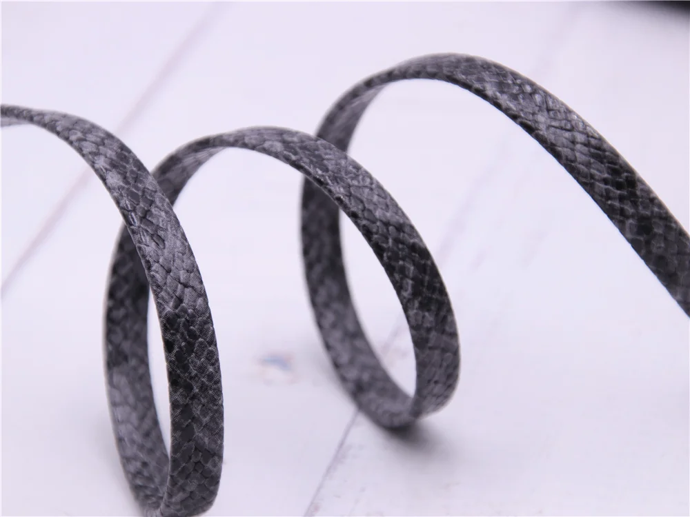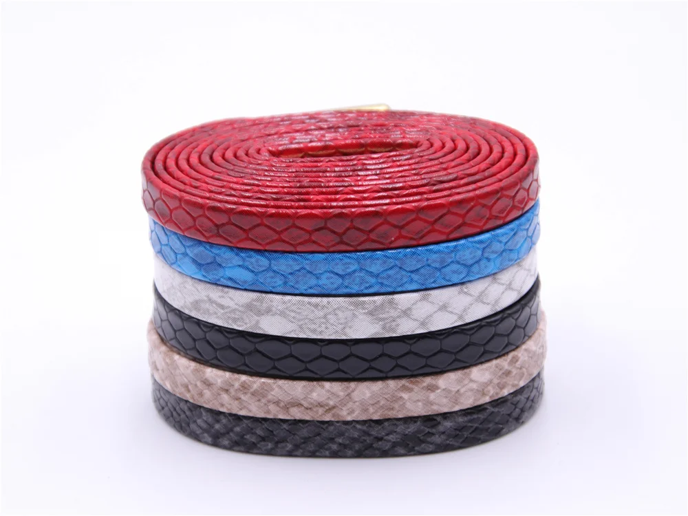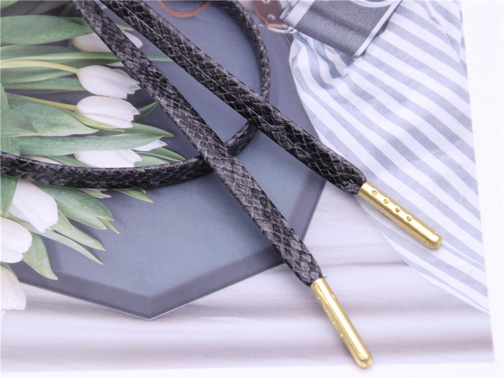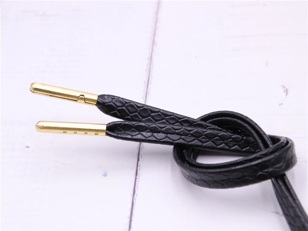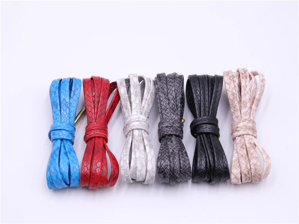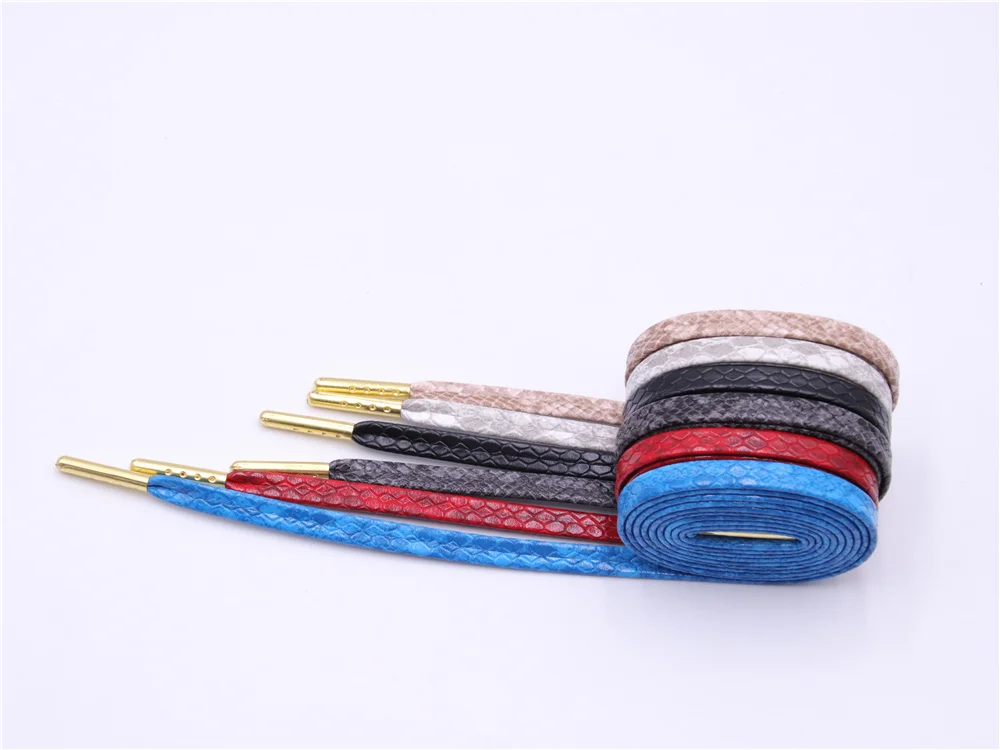 7MM Imitate Snake Skin Drawing Flat Luxurious PU Leather Shoelaces With Golden Metal Tip Nice Boot