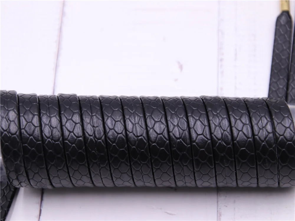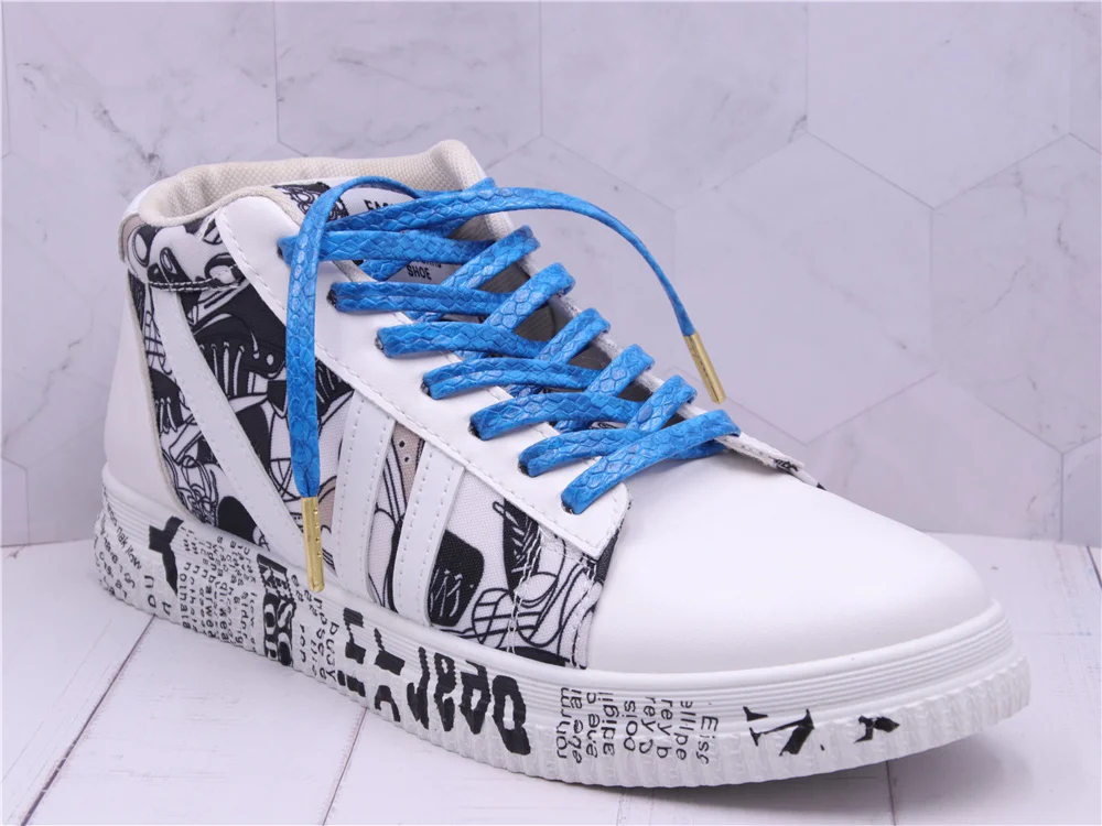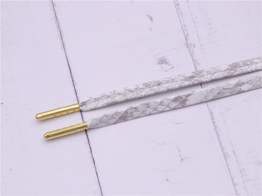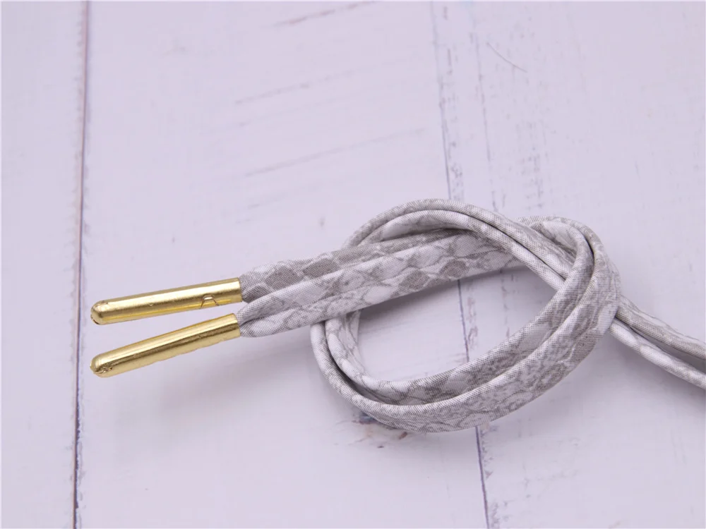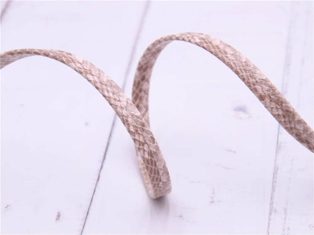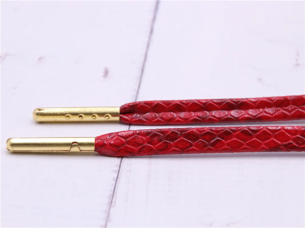 7MM Imitate Snake Skin Drawing Flat Luxurious PU Leather Shoelaces With Golden Metal Tip Nice Boot