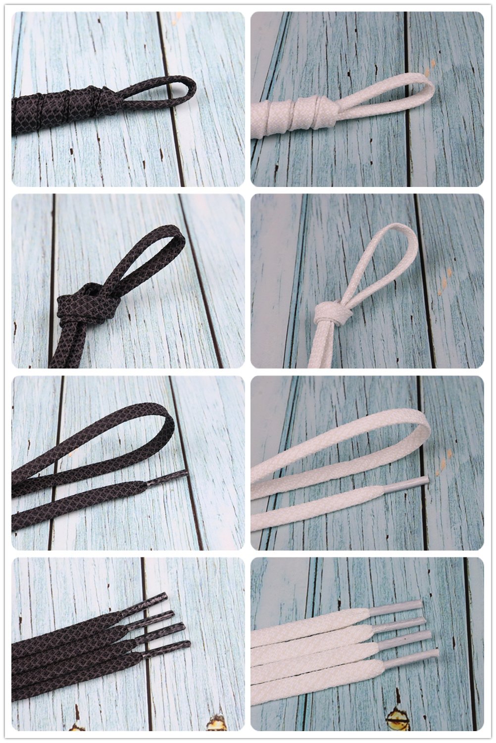 7MM Shoe Accessories Flat Type Black White Reflective Laces Top Shoelaces Glow In The Dark Easy
