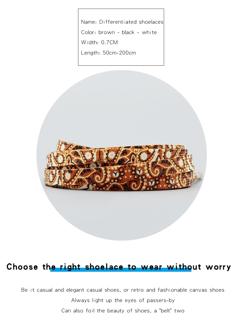 7MM Snake Brown Naturally Natural Off-road Shoe Laces Paisley Pattern Flat Shape Cords Men Women