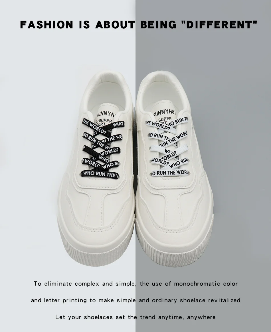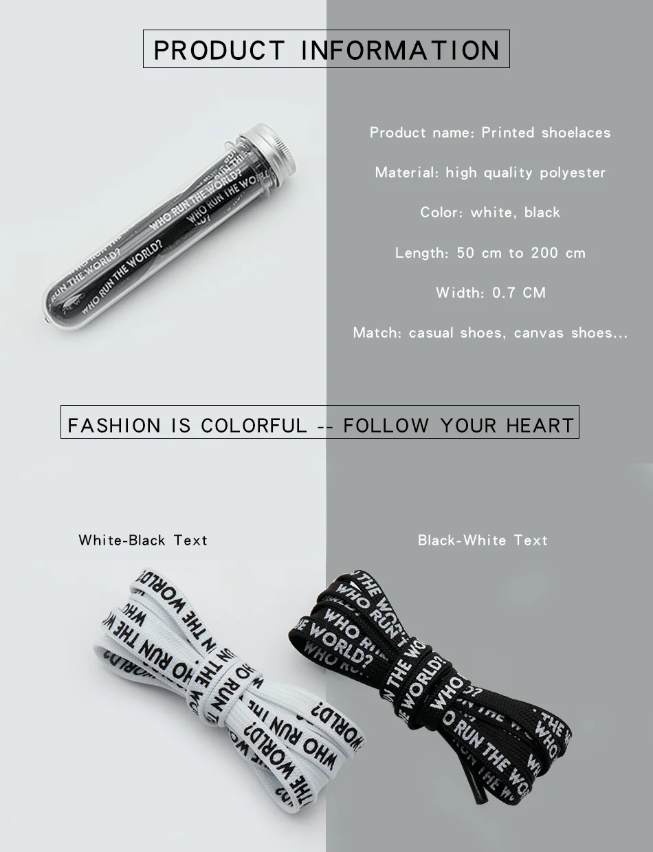 7MM WHO RUN THE WORLD Text Silk Screen Printing Plain Shoelaces White Black Draw Laces Men Women