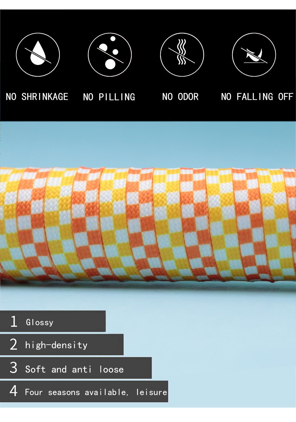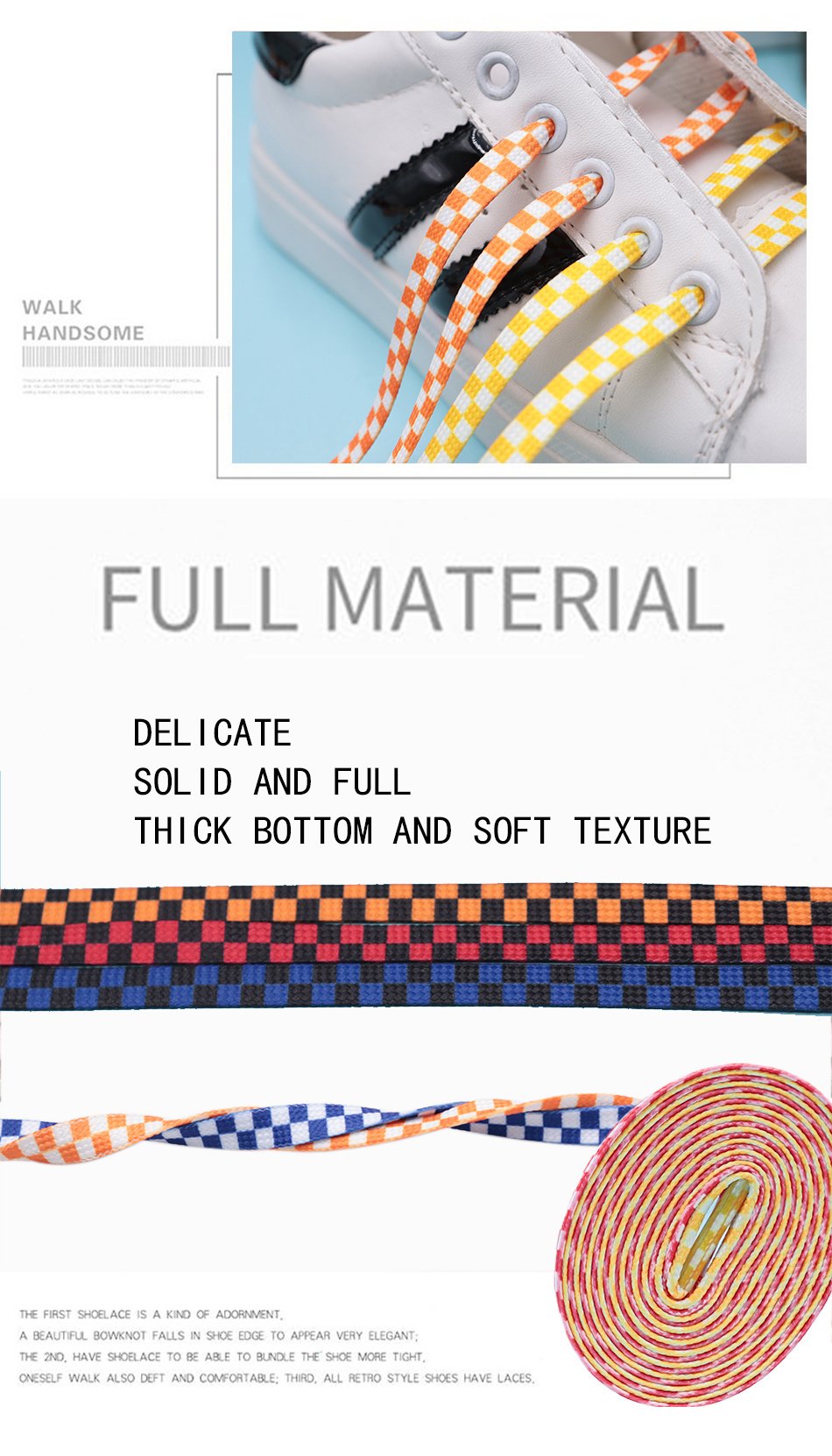 8MM Checkered Pattern Top Quality Heat Transfer Printing Lacet Decoration Of Finny Sneakers Women
