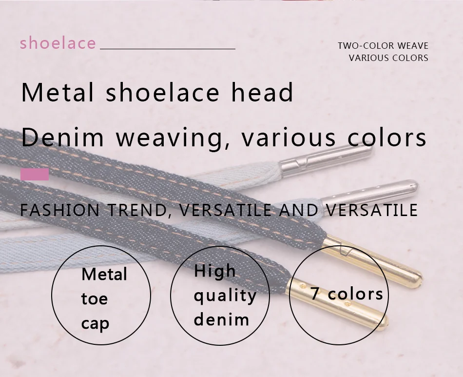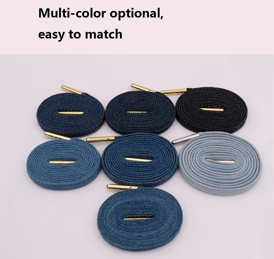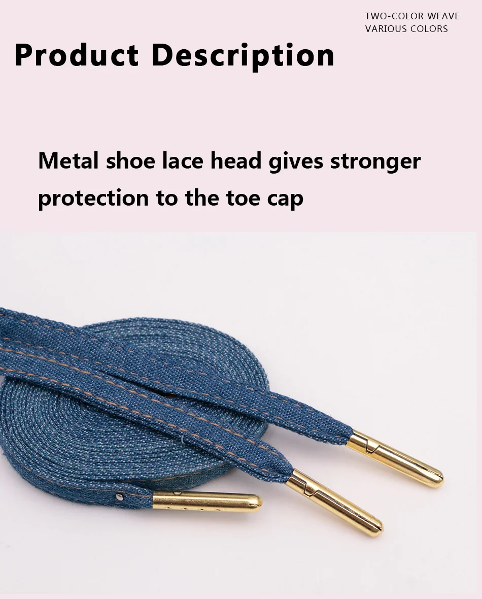 8MM DENIM Shoelaces With Golden Siliver alloy Tips Office Business Men Women Boot Shoe Durable Lacets 2021