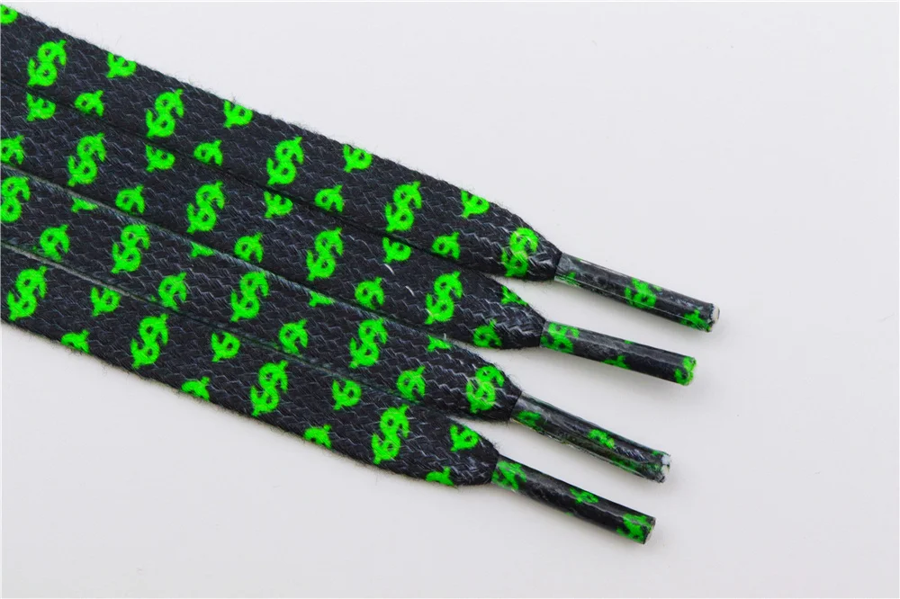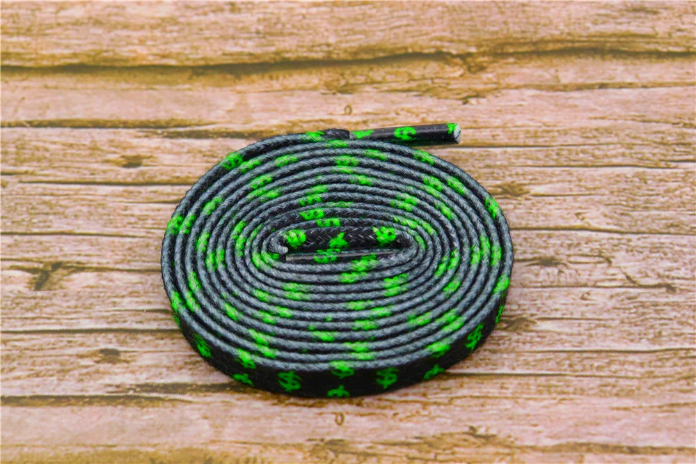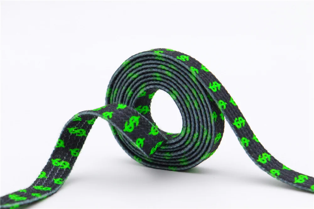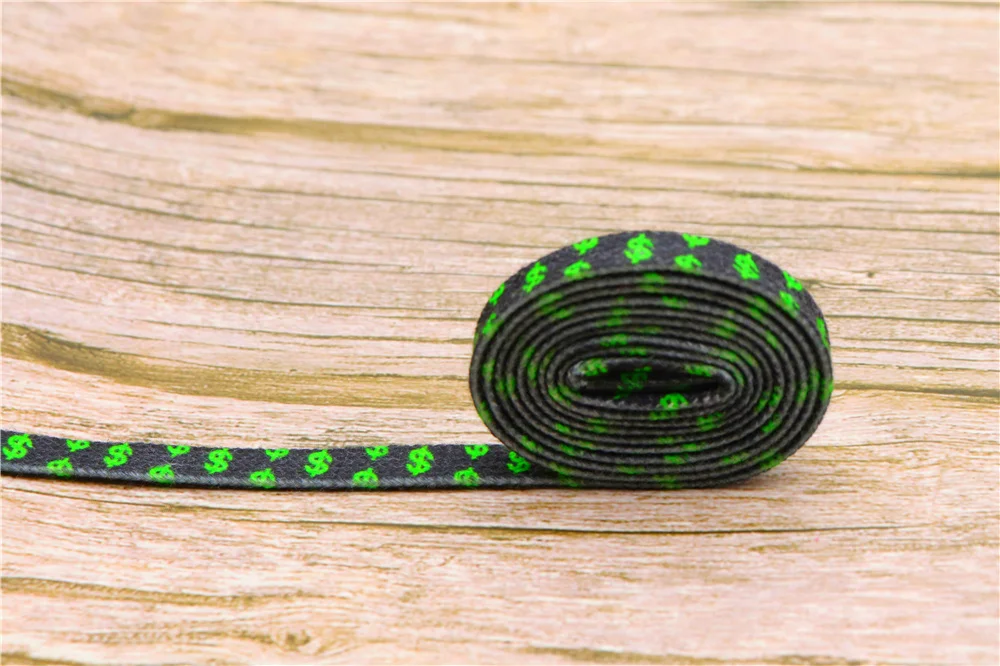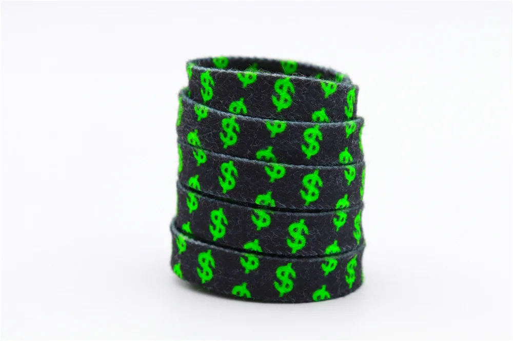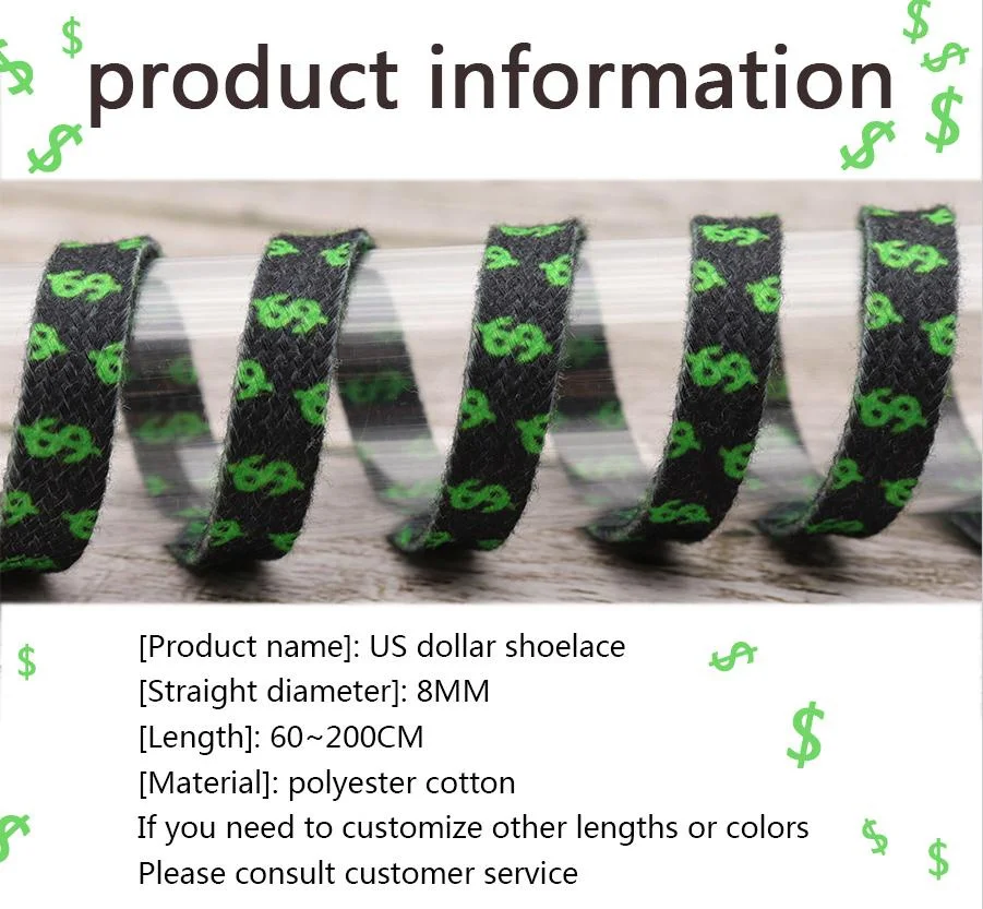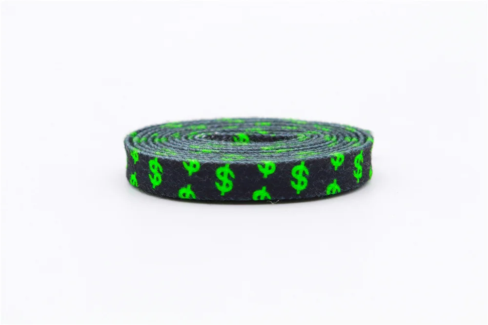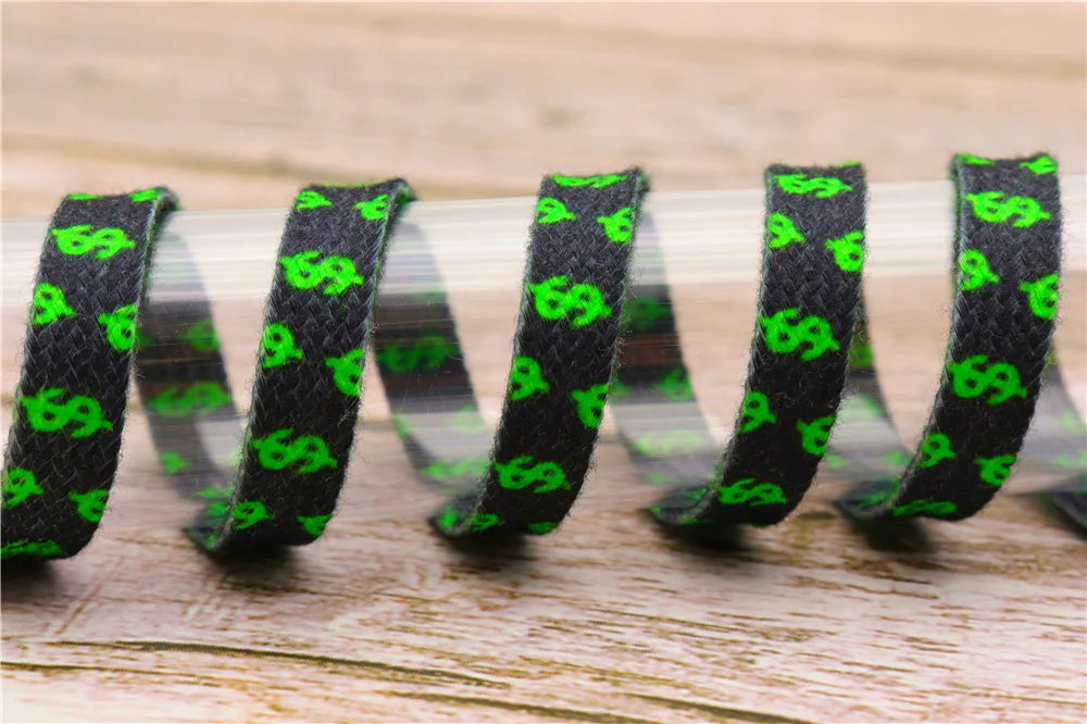 8MM Flat Canvas Polyester Cotton Laces Black-Green Dollar Heat Transfer Printing Pattern Top Ropes