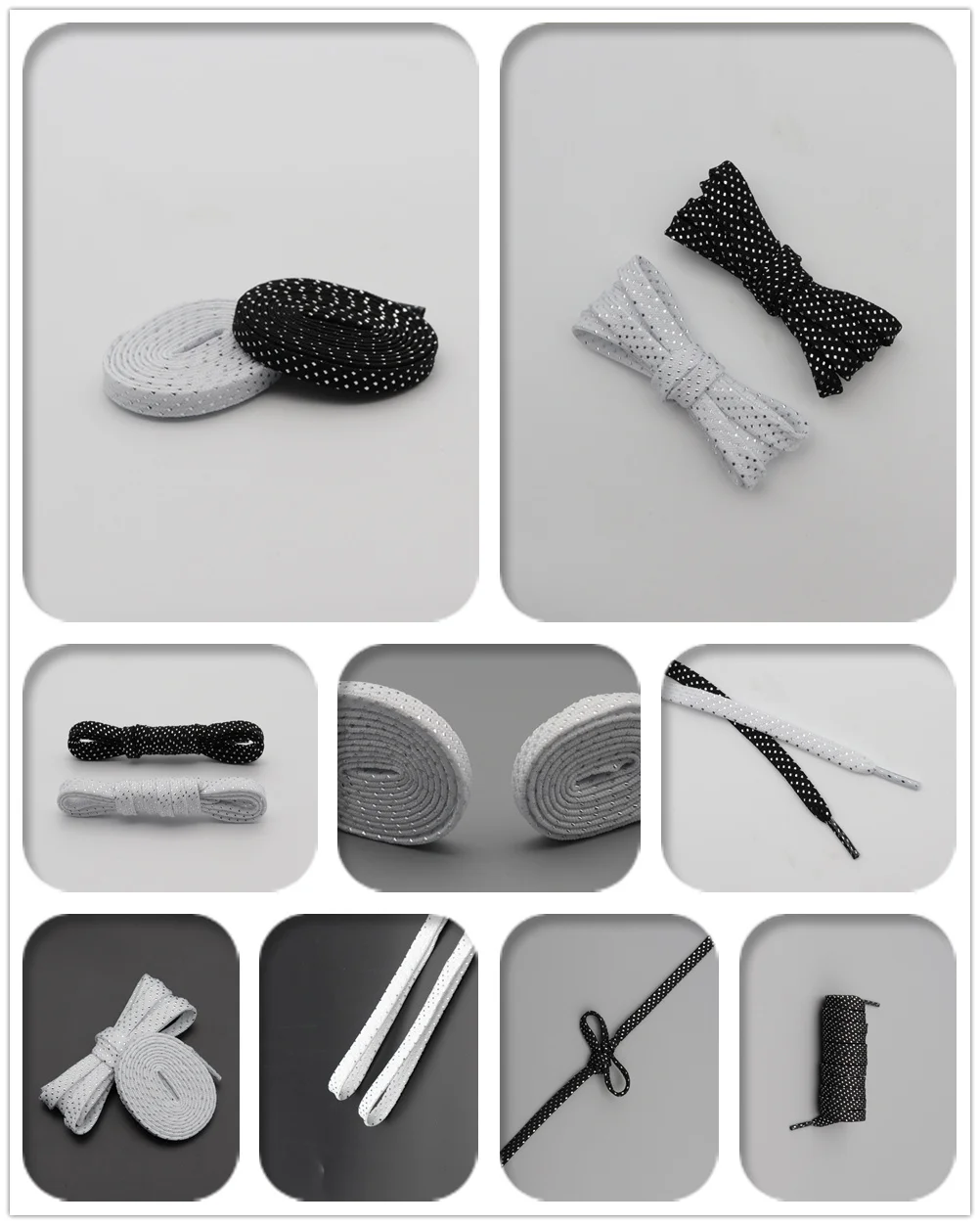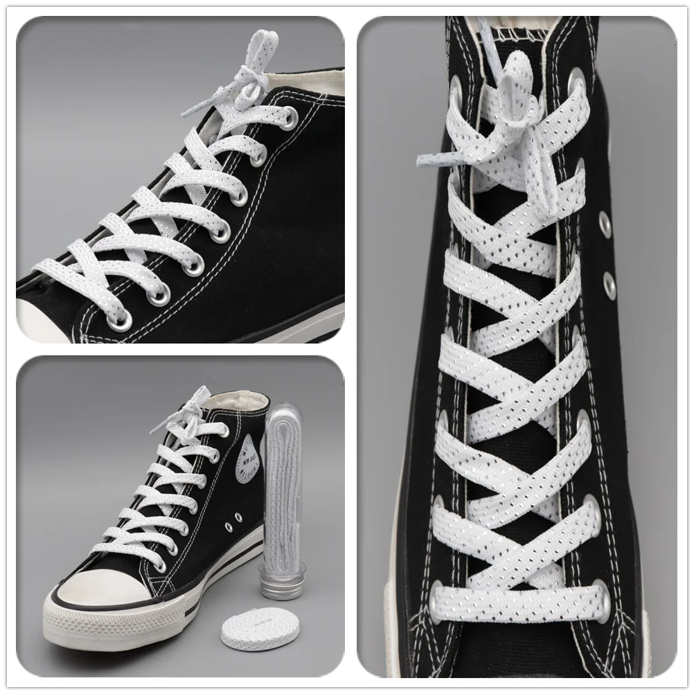 8MM Pretty Shoe Accessories White Black Flat Type Shoelaces Top Quality Metallic Yarn Laces For
