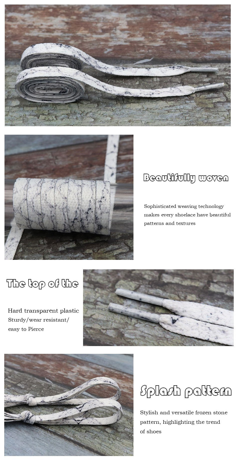 8MM White Black Glacier Frozen Stone Textur Shoelaces Unisex For Zapatillas Mujer Flat Perfect Shoe