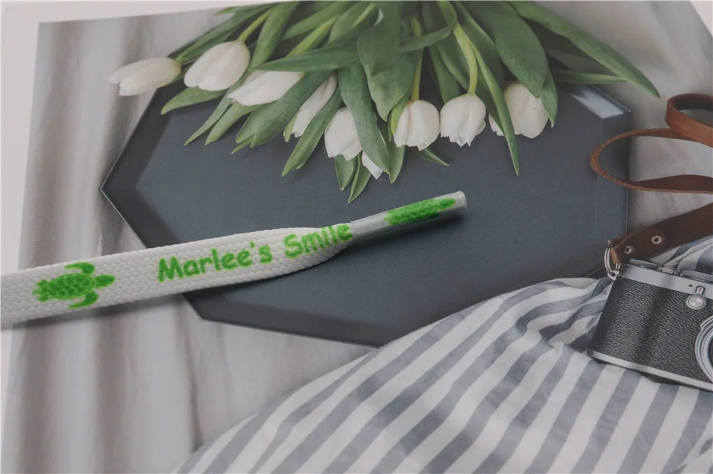 8MM White-Green Turtle Pattern High Quality Shoelace "Marlee's Smile" Letter Printing Rope изи буст