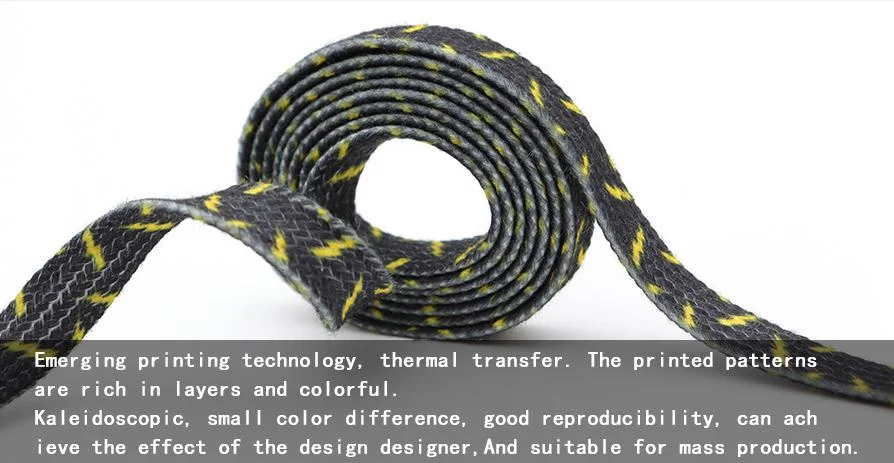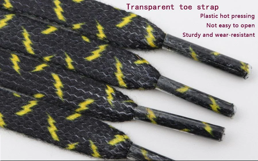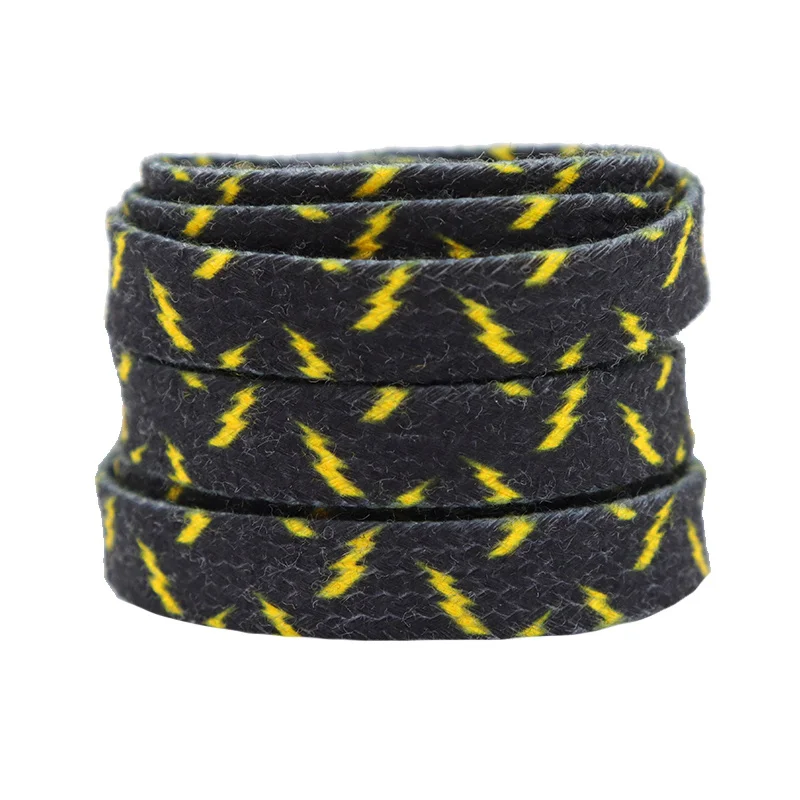 8MM Wide Shoe Accessories Black&Yellow Lighting Heat Transfer Printing Flat Laces Canvas Boots