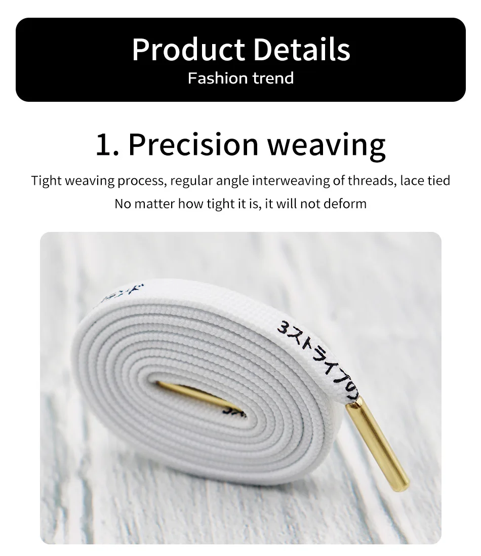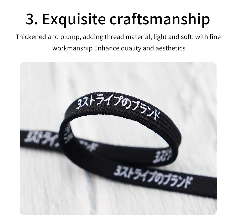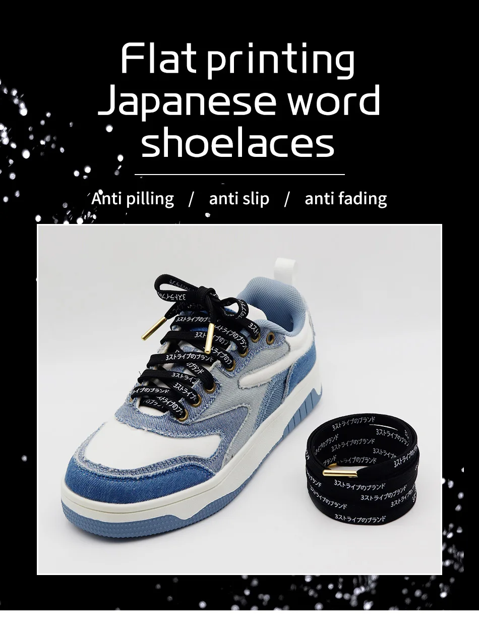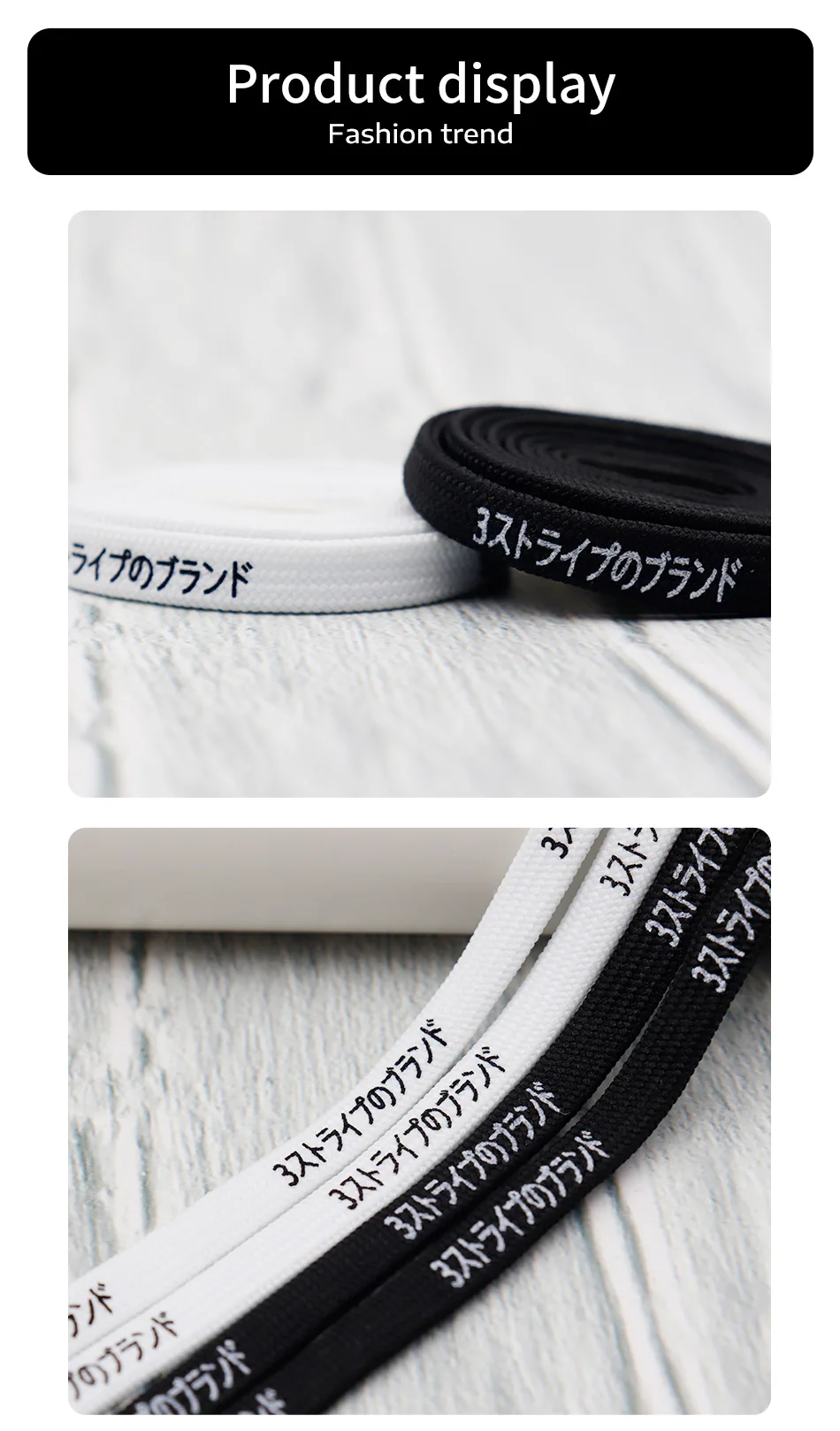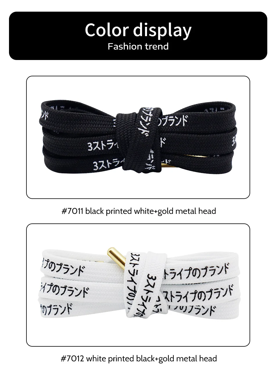 Black and White Two-tone Japanese Printed Letter Metal Laces End Shoelaces 0.8cm Wide Casual Sneakers Polyester Drawstring Cord