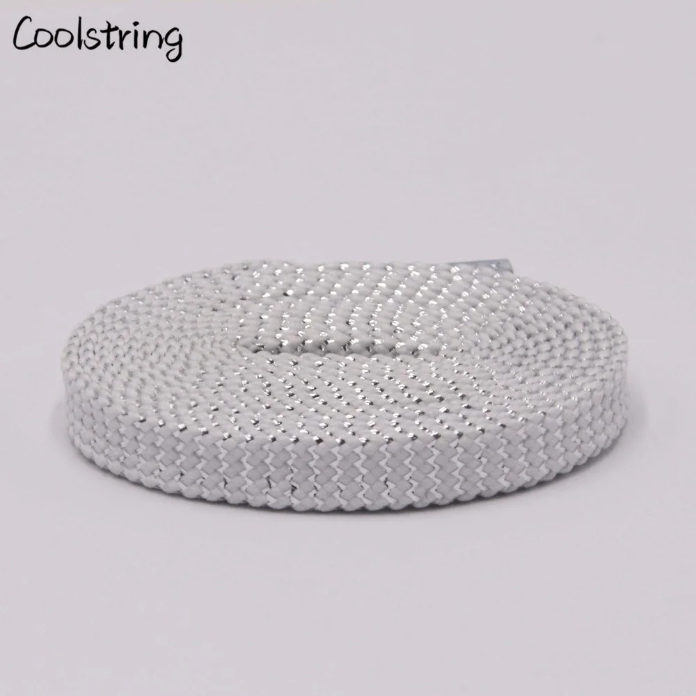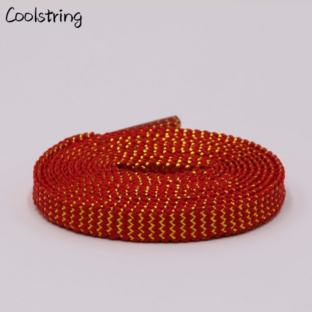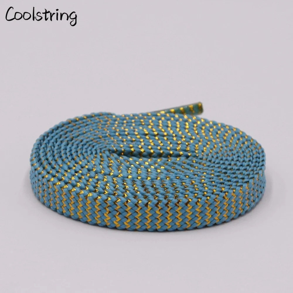 Coolstring Cool 0.7cm Two Colors Mixed Shiny Gold And Silver Thread Sport Sneakers Flat Shoelaces Bootlaces Shoe Laces Strings Support Drop shipping