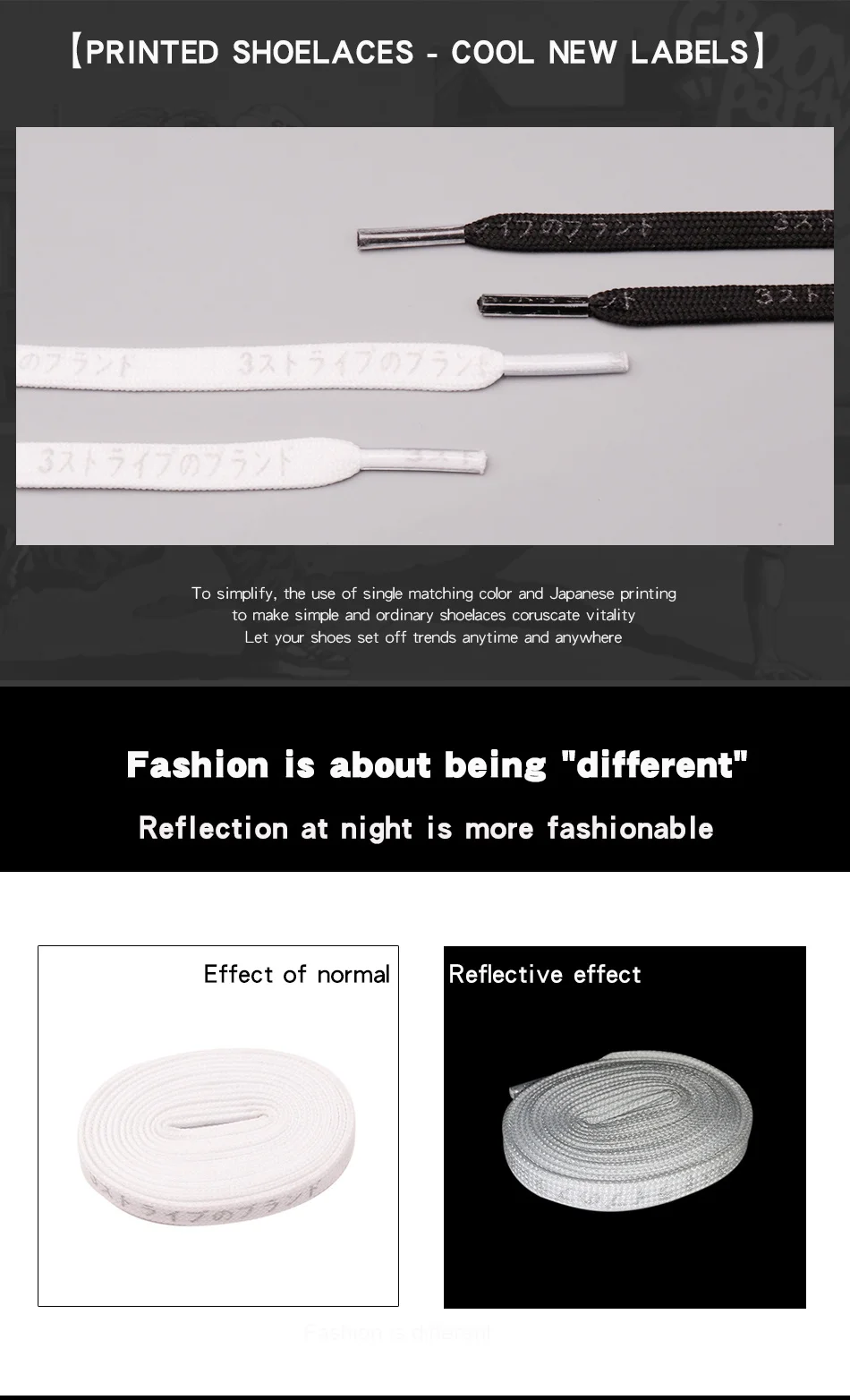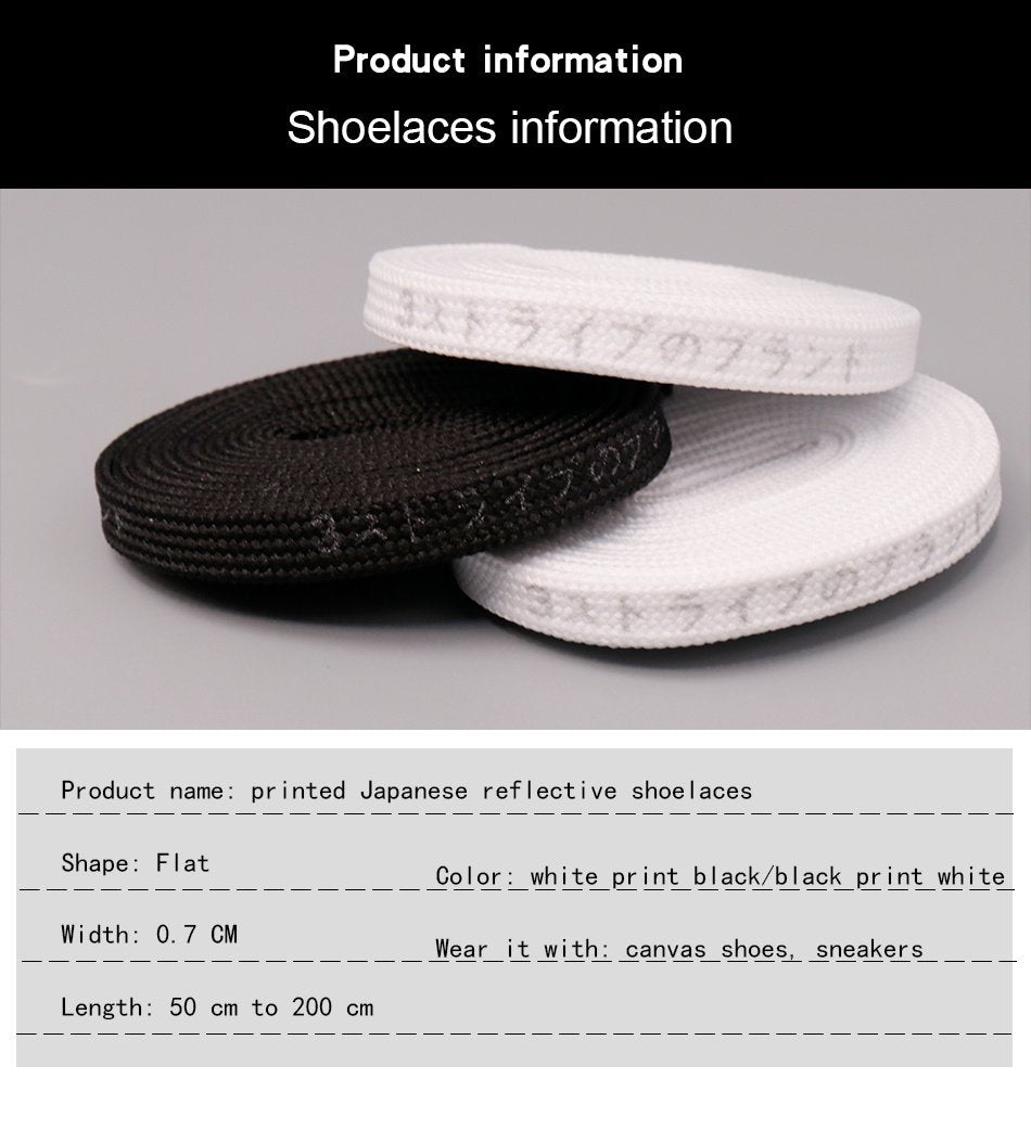 Double Layer Polyester Silk Sreen Lacets With Golden Japanese Katakana Reflective Shoelaces 2021