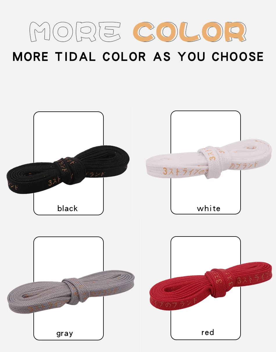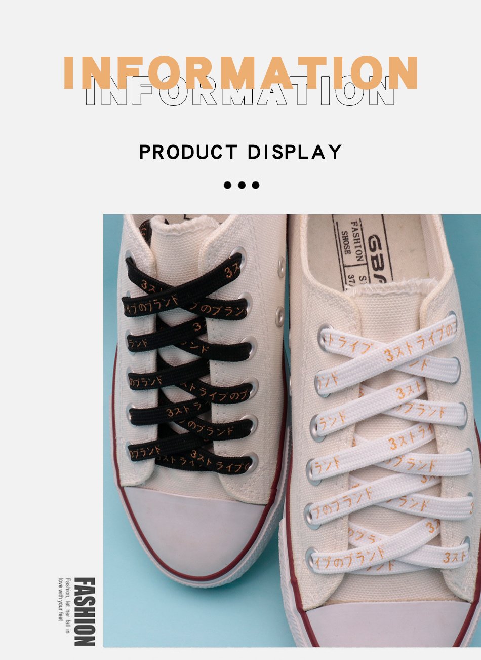 Double Polyester Shoelaces With Golden Japan Katakana Letter Silk Screen Printing Laces Men Women