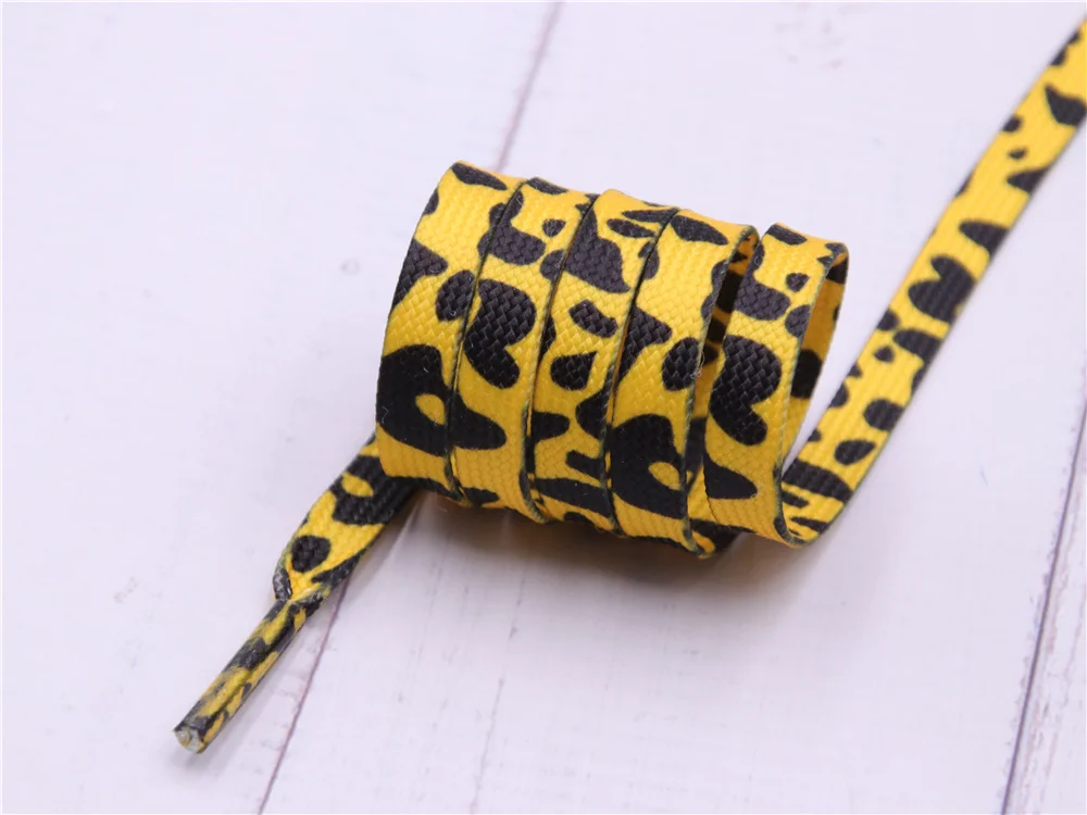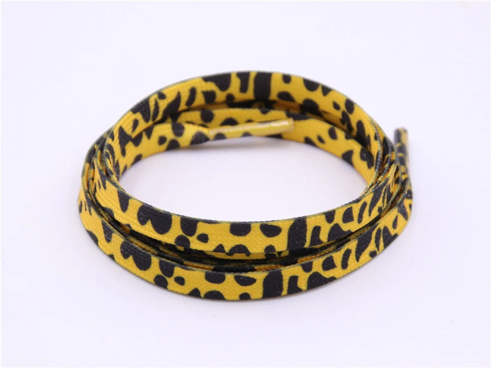 Fashion Trend 7mm Polyester Digital Printed Leopard Flat Sports Laces Thermal Transfer Shoelaces