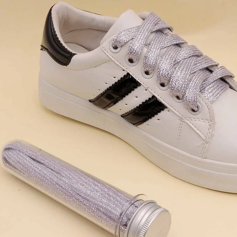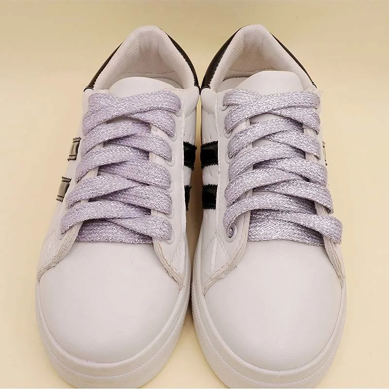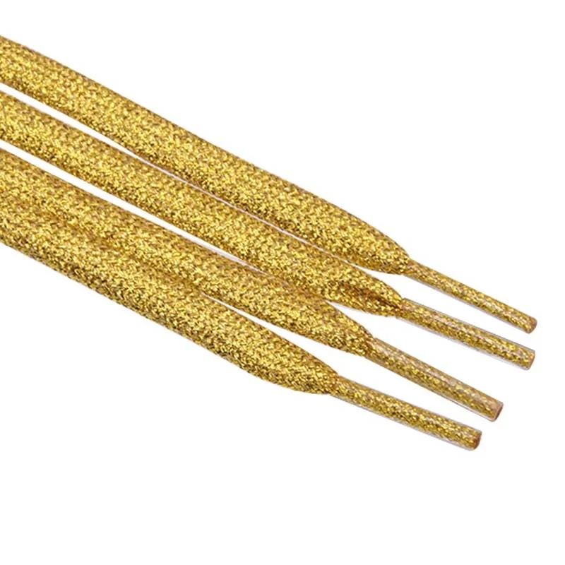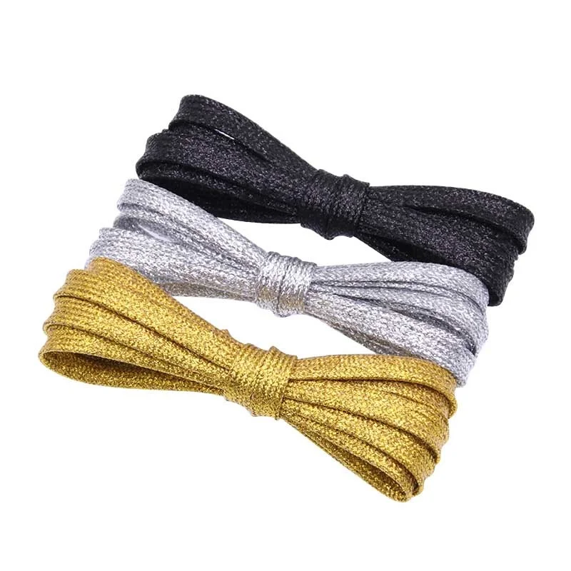 Flat Type Top Metallic Polyester Shoelaces Men Women's Shoe Sneaker 2021 Golden Black Sliver Top