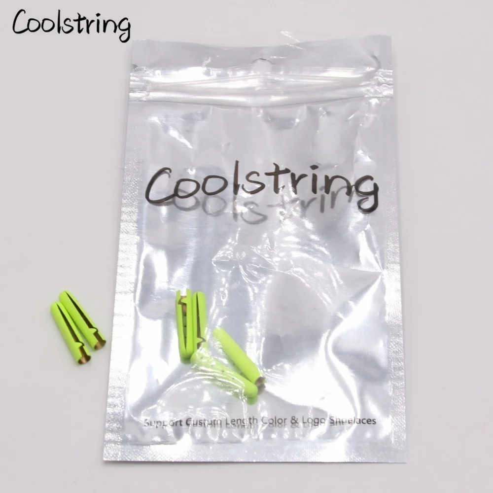 Coolstring New 4pcs/set 4.0x23mm Fluorescent Yellow Orange Painting Metal Tips For Shoelace Drawstring Clothing DIY Accessories
