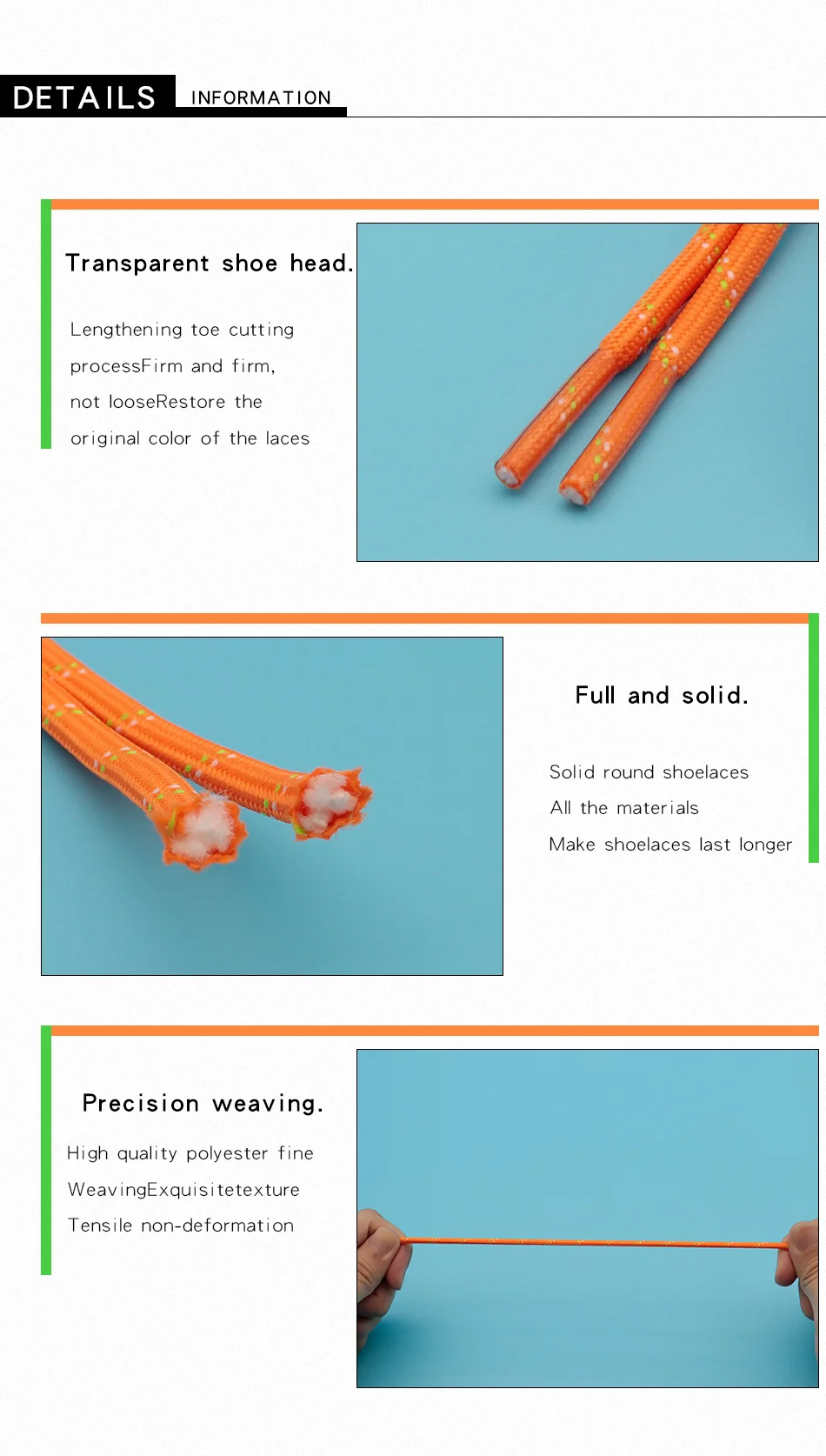 Nice Shoe Accessories Green Orange Eye-catching 4.5MM Polyester Ropes Trendy Colour Matching Laces