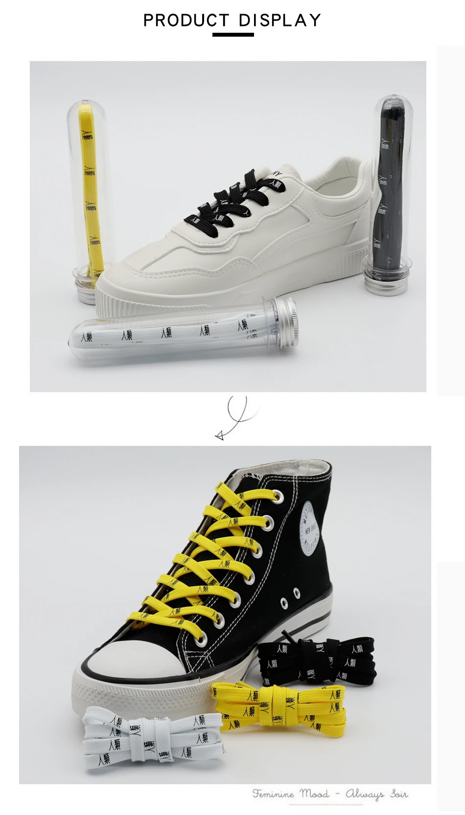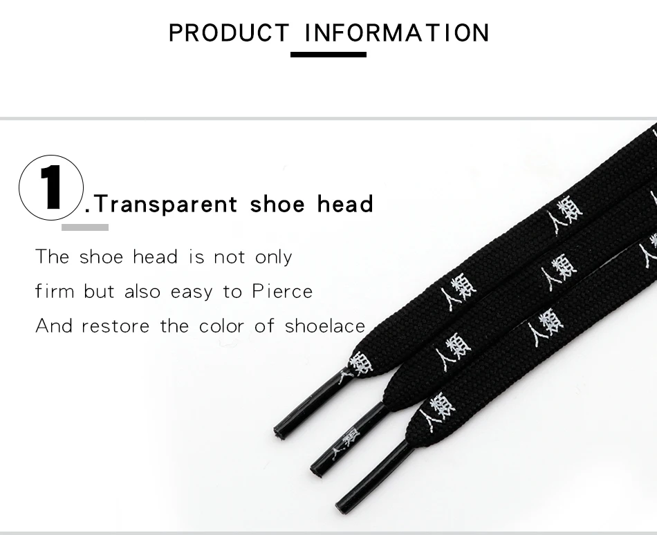 | -Customized for Yourself/Logo/Bulk Order ·We also could accept customised length and color according to your request as sample order,Please contact us for help. ·Support Printing Logo on the Plastic or Metal Aglets. ·If you want to make bulk order more than 50 pairs,Please contact us for a better price. |