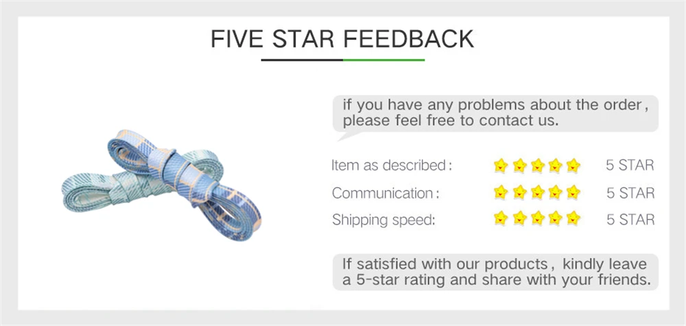 | -Customized for Yourself/Logo/Bulk Order ·We also could accept customised length and color according to your request as sample order,Please contact us for help. ·Support Printing Logo on the Plastic or Metal Aglets. ·If you want to make bulk order more than 50 pairs,Please contact us for a better price. |