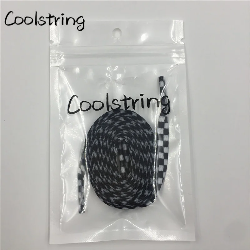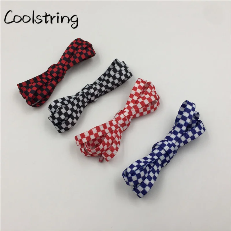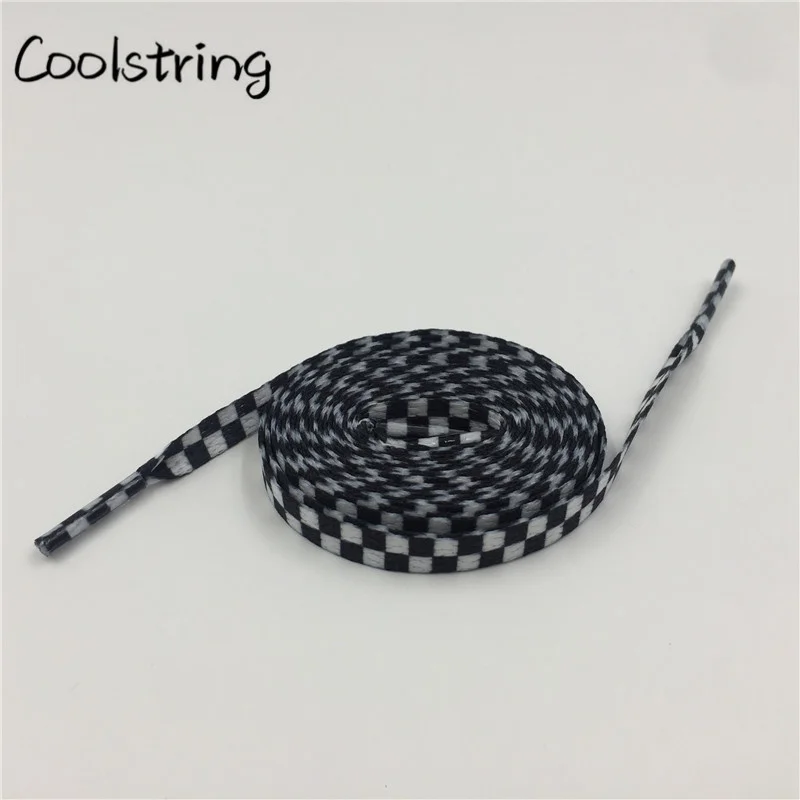 Coolstring Polyester 8mm Width Flat Shoelaces Grid Shoe Lace Checkered Digital Print Shoestrings Sublimated Drop Shipping