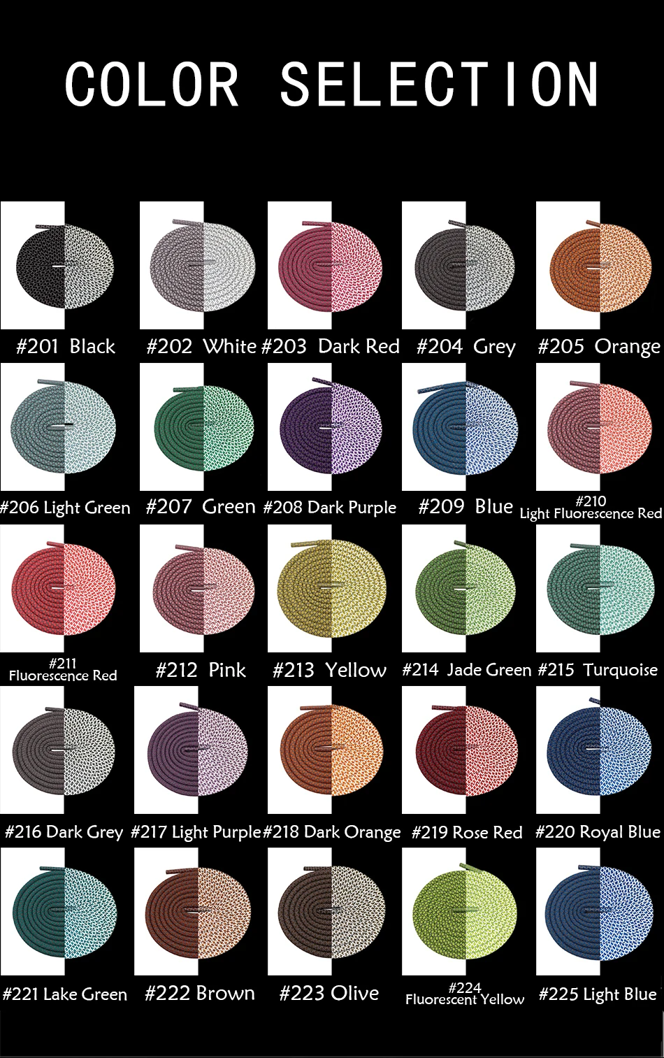 | -Customized for Yourself/Logo/Bulk Order ·We also could accept customised length and color according to your request as sample order,Please contact us for help. ·Support Printing Logo on the Plastic or Metal Aglets. ·If you want to make bulk order more than 50 pairs,Please contact us for a better price. |
