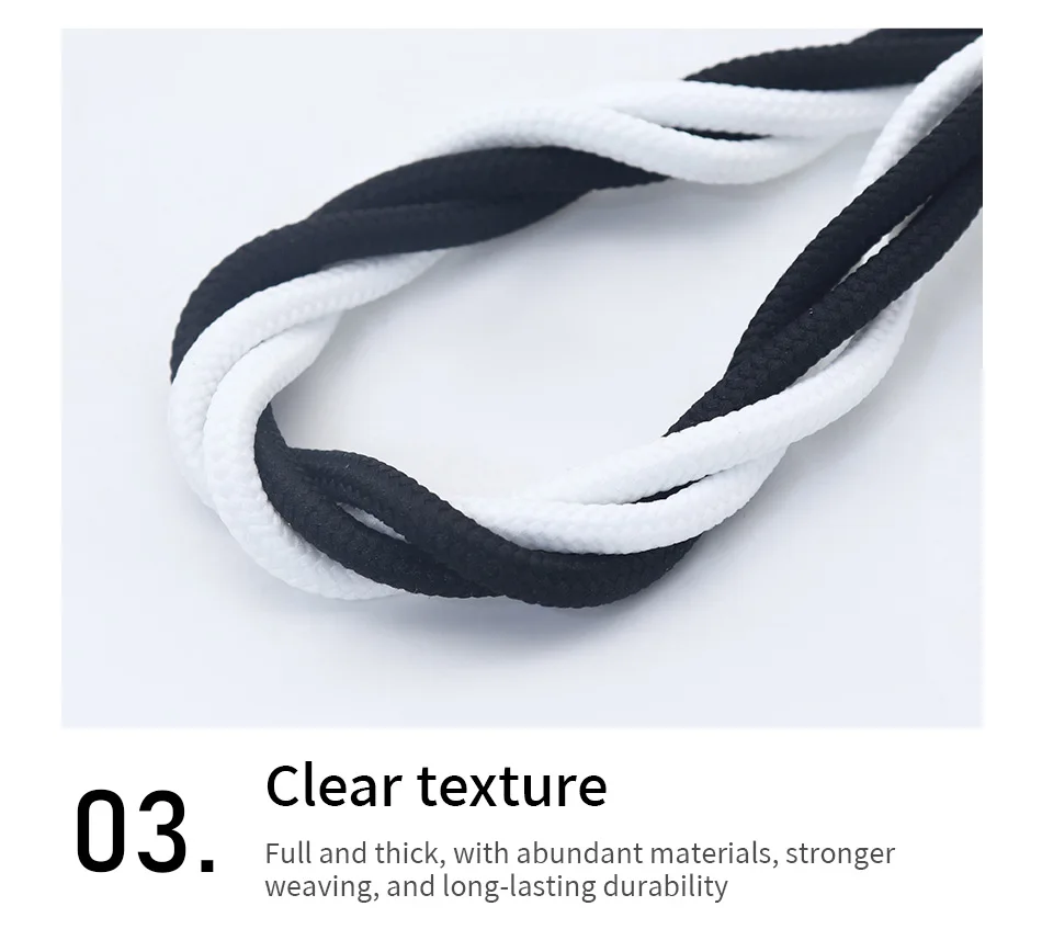 Round Black and White Solid Color New Trendy Shoe Laces 0.5cm Wide Charm Custom Low MOQ Promotional Gift Items Sneaker Men&Women