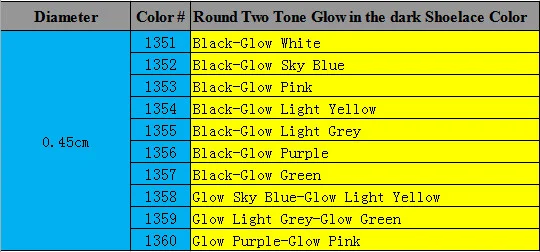 1 pair of Round Two tone Glow in the dark shoelaces(1 pair = 2 pieces)