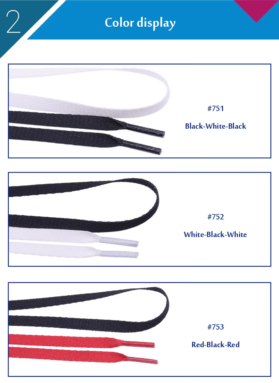 | Product Detail1.Size 0.7cm Width;170cm/67" length. 2.Color 6 Colors as picture shows ; 3.Material Polyester + plastic tips; 4.Logo Support Printing Logo on the Plastic or Metal Aglets; 5.Gross Weight About 20g / Pair; 6.Item Features High strength;Good insulation propertie; Abrasion resistant;Chemical resistant ; 7.Item Application Sports Shoes,Casual Shoes,Children's Shoes,etc; 8. Certificate Oeko-tex-100,ISO9001,SGS,CE 9.Sample fee Free Sample,and buyer afford for the shipping fee. Note: If you want to make a bigger order,and want to get a better price,Please contact us for help. Package includes: 1 pair of 2 Tone Flat Shoelaces (1 pair=2 pieces). Product Display: |