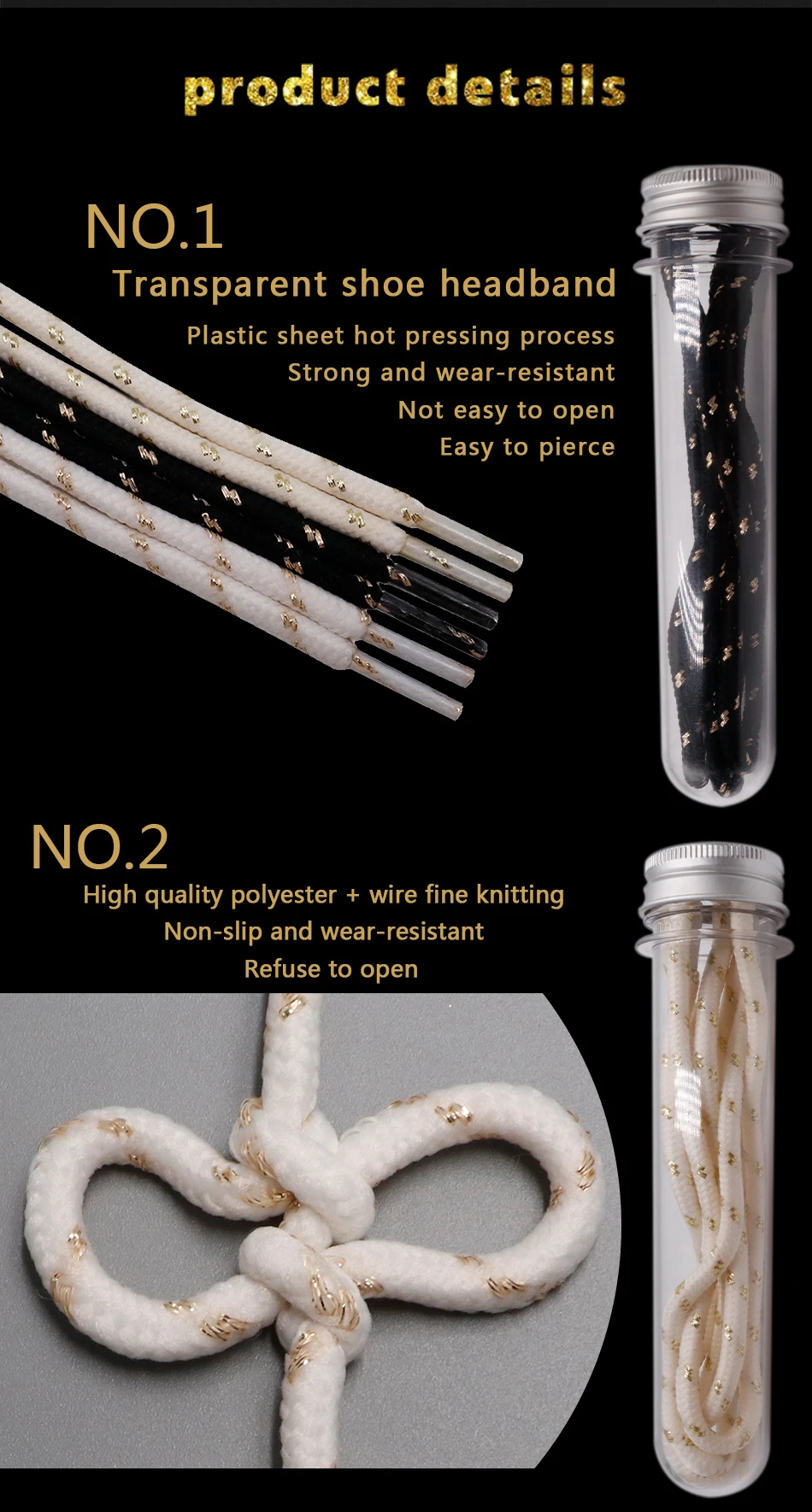 Weiou 8MM Top Shoe Ropes Clothing Charmed Metallic Yarn Laces Shining Charmed White Black Shoelaces For Adults&Kids Custom BulkIf you need test tube packaging, please purchase separately.![]()