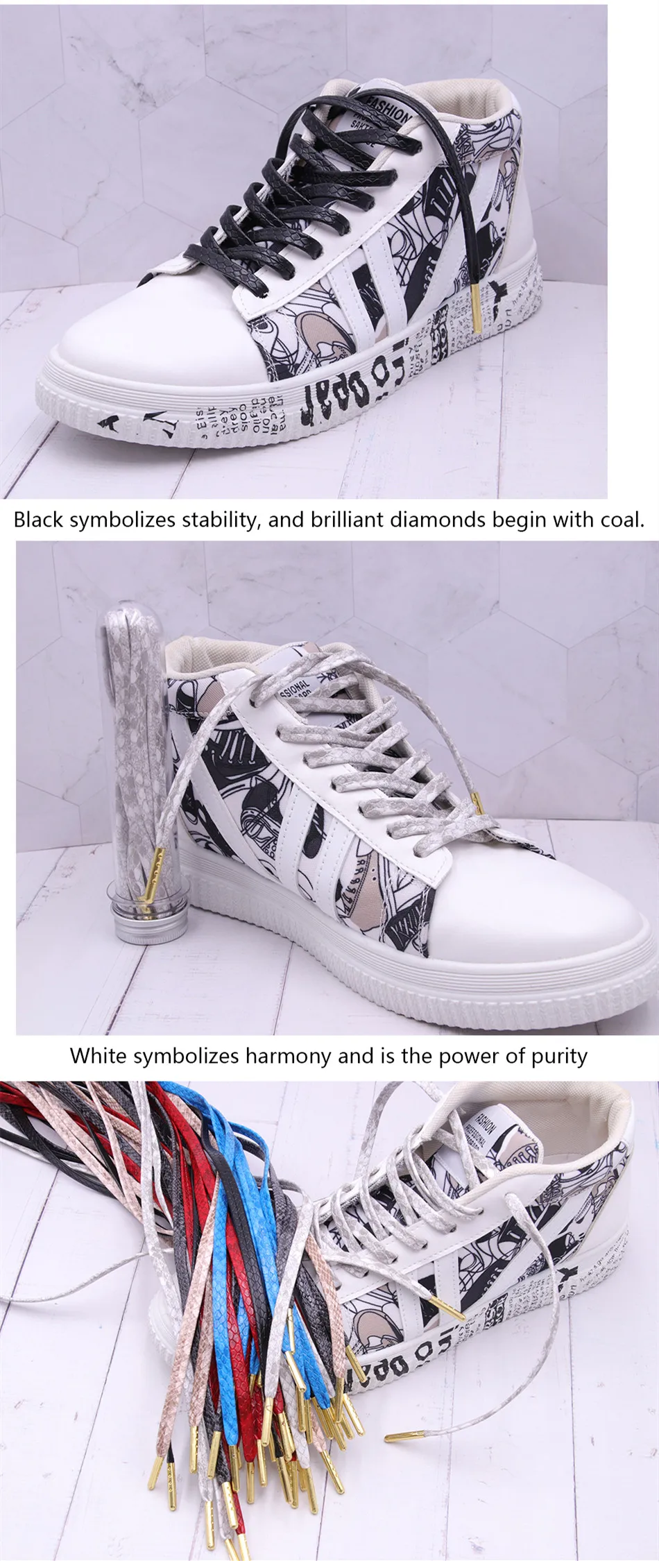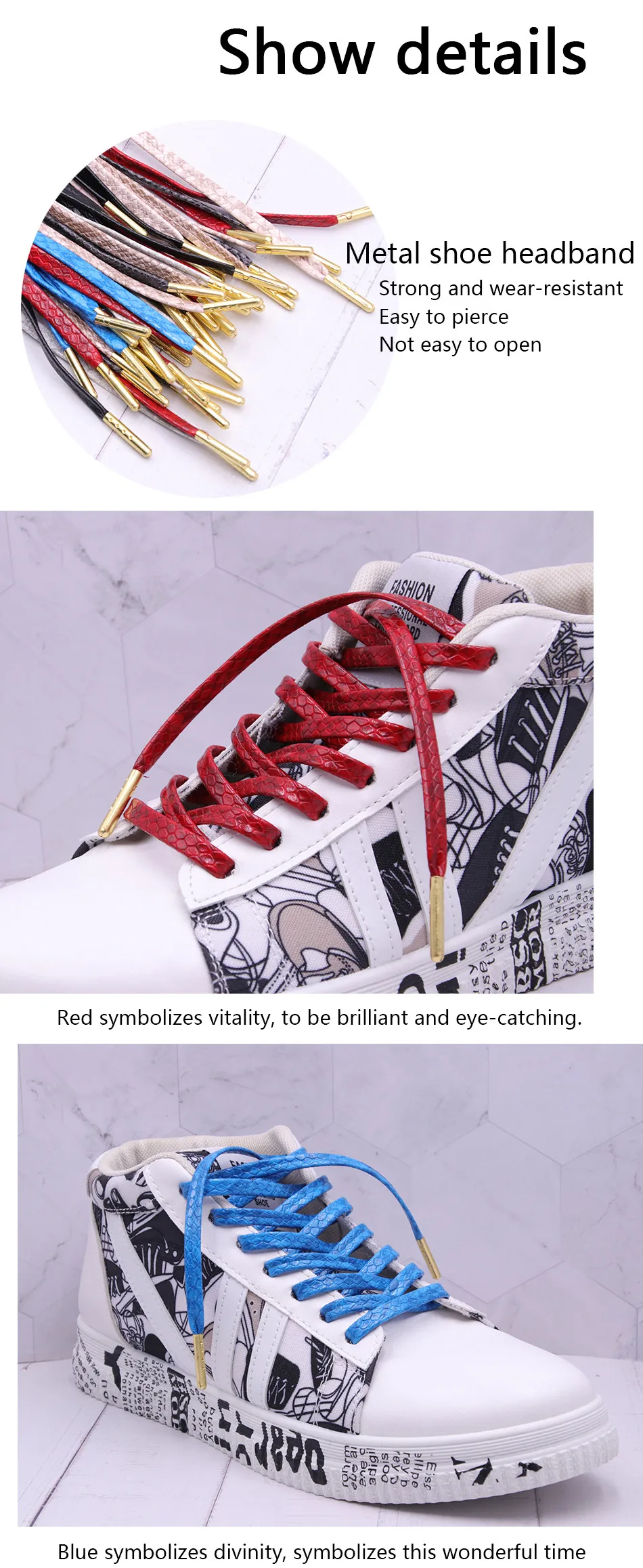 | Weiou 7mm Flat Snake Skin Shoelaces White Red Grey Brown Luxury Leather Shoe Laces With Gold Metal Aglets For Sneakers Sports |