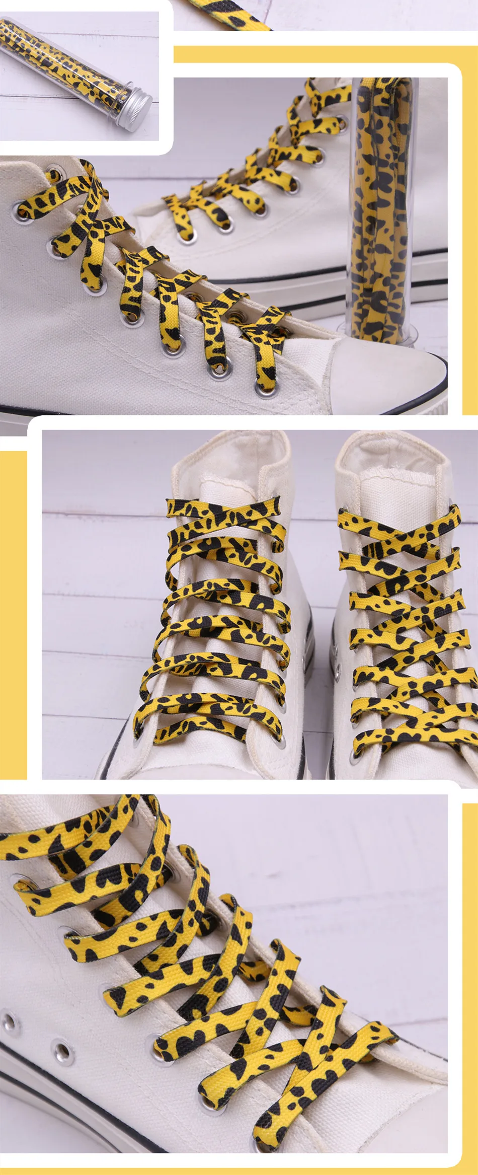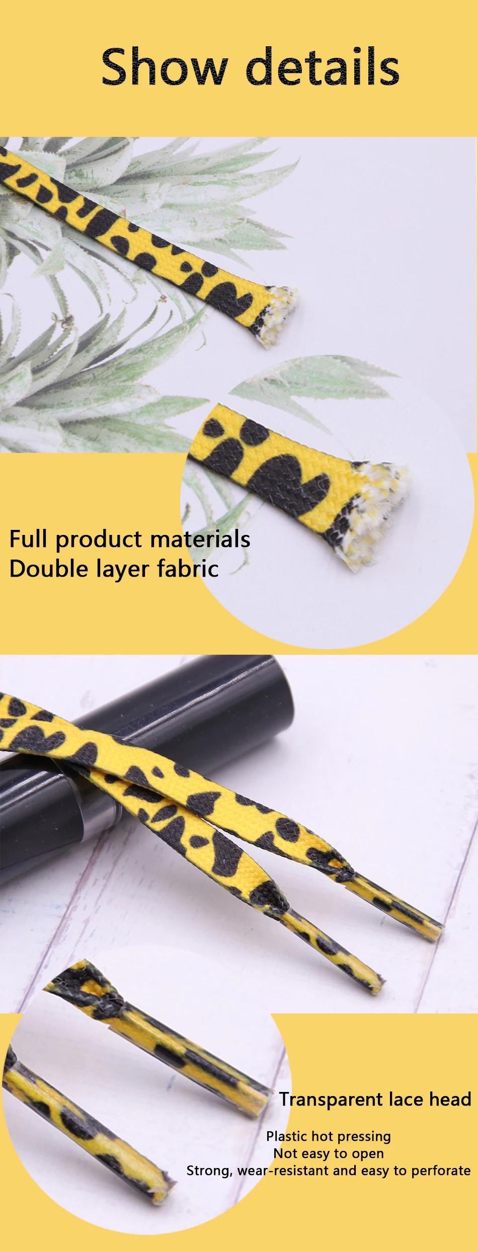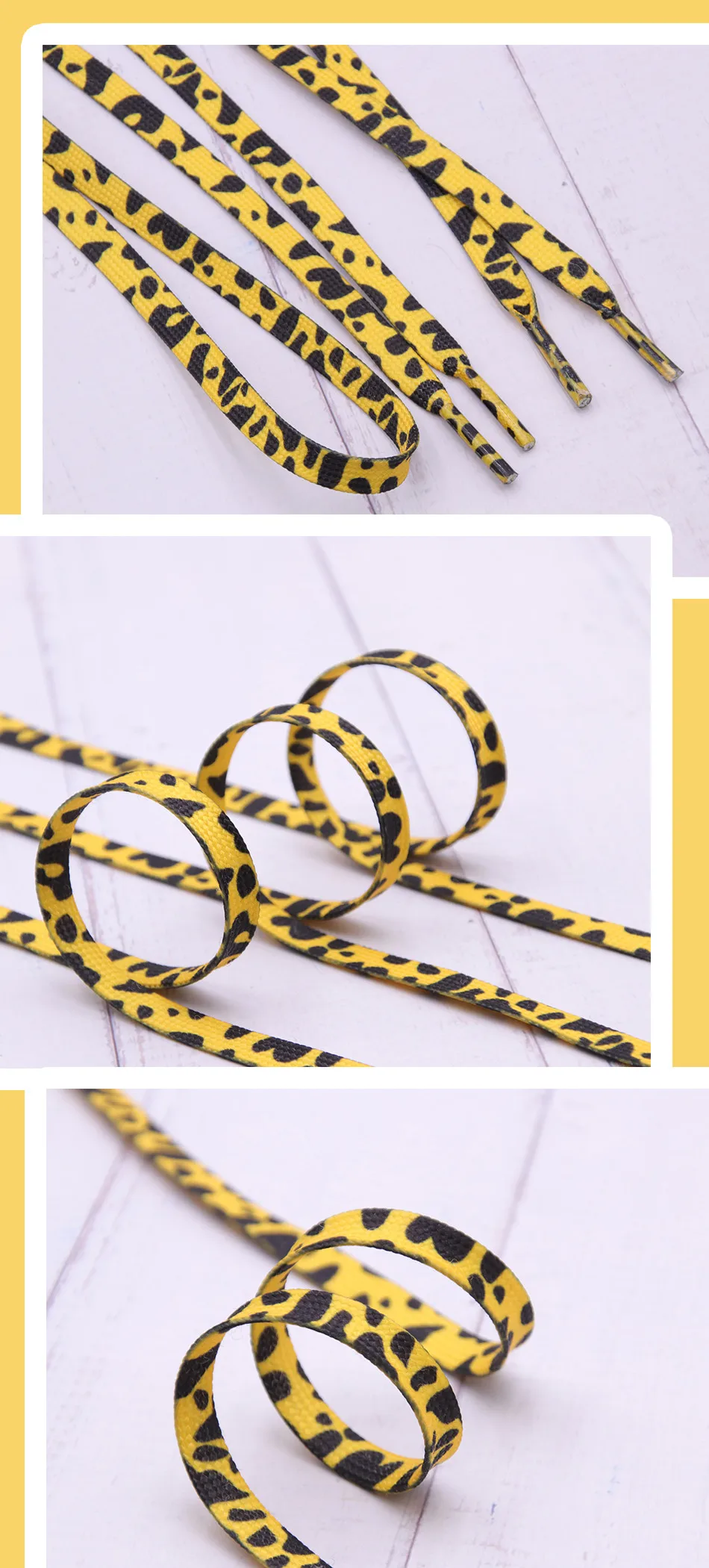 | Weiou 7mm Polyester Double Hollow Flat Printed Classic Leopard Laces Sublimated Heat Transfer Shoelace Digital Print Shoestrings Support Drop shipping |