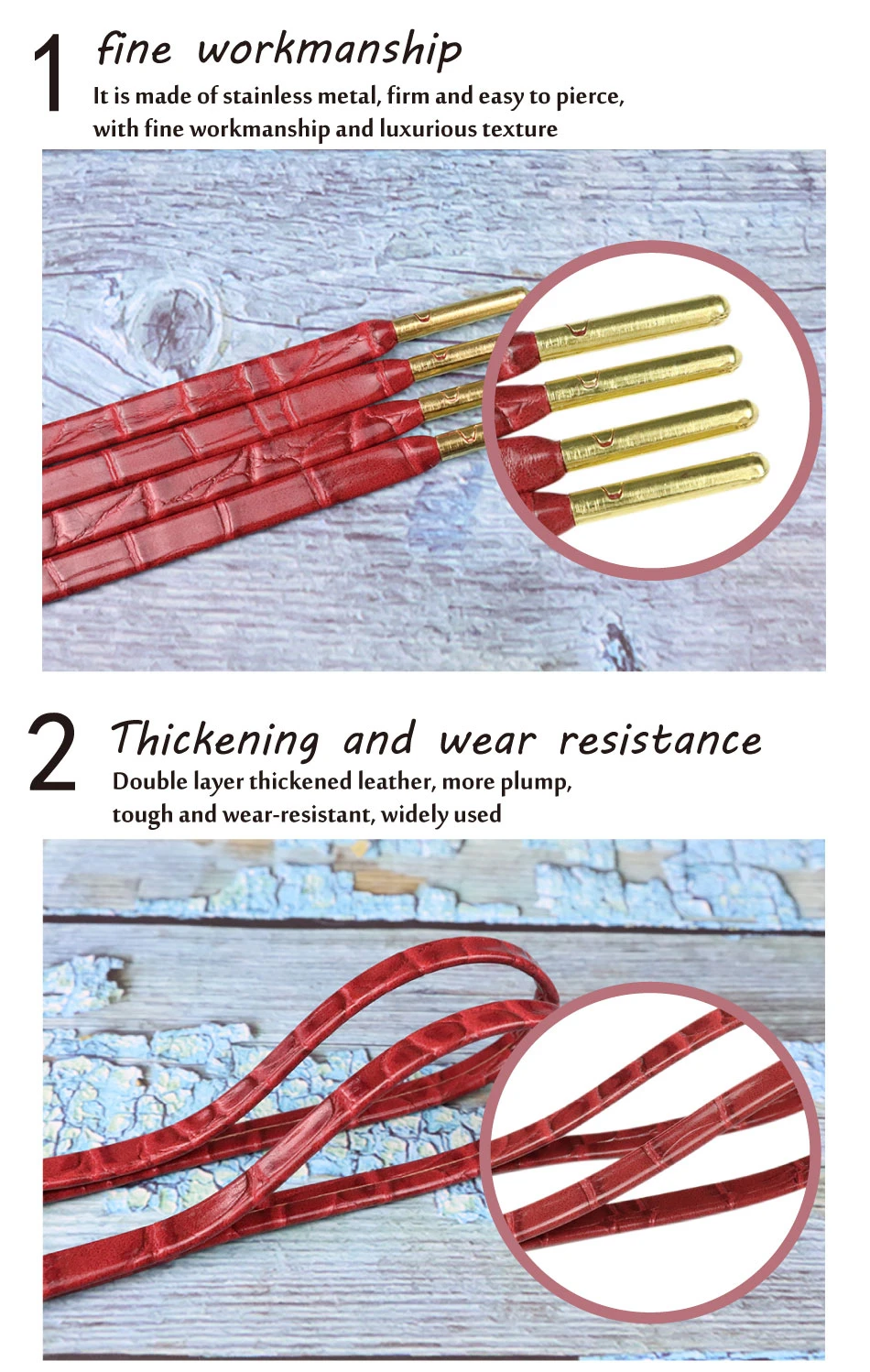 Weiou Children Women Men Boots Sneakers Shoestring 0.7 Cm Flat Leather Shoe Laces All Matched Classical Red Shoelaces Gold Aglet![]() ![]() ![]()