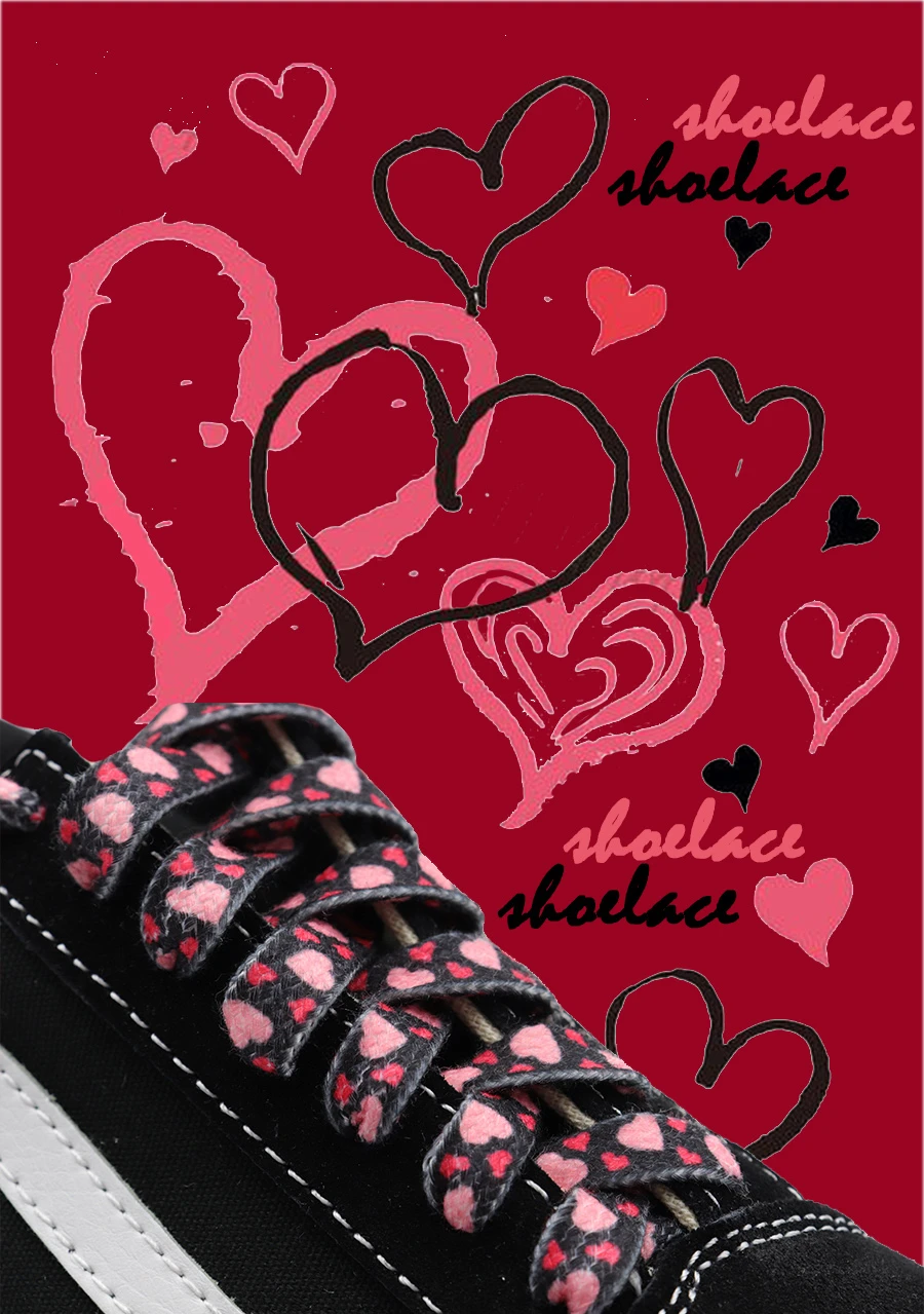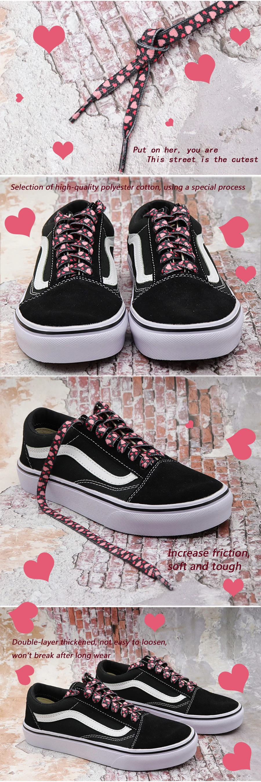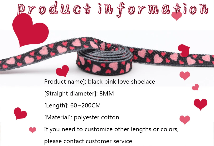 Weiou Cute Black Pink Love Printed Shoelaces 0.8 Cm Flat Type Shoestring For Children Women Sneakers Fabric Canvas Shoes1.Size: 60-180cm *8MM ;