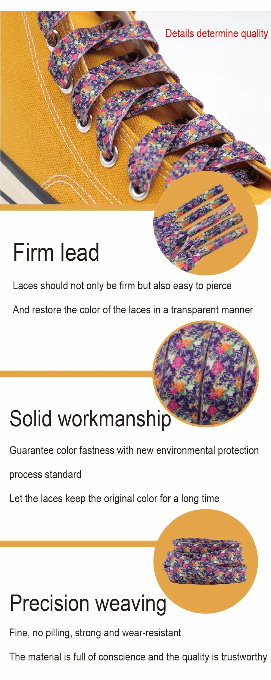 Weiou Fashion Adorable Shoelaces 0.9cm Flat Printed Summer Retro Floral Cotton Shoe Laces Young