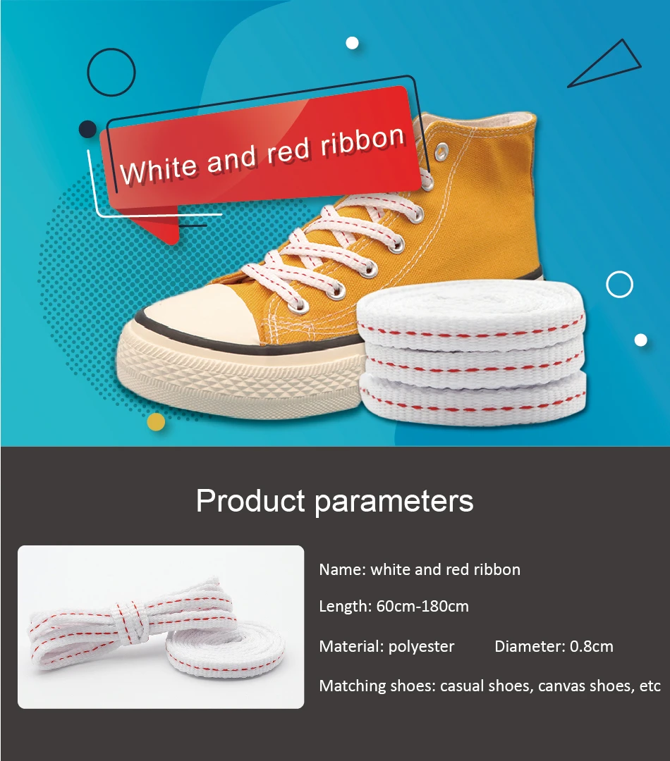 Weiou Lace New Simple Style Shoelaces 0.8 Cm Flat White And Red Polyester Shoestrings Matched Children Women Canvas Casual Shoes-1.Size