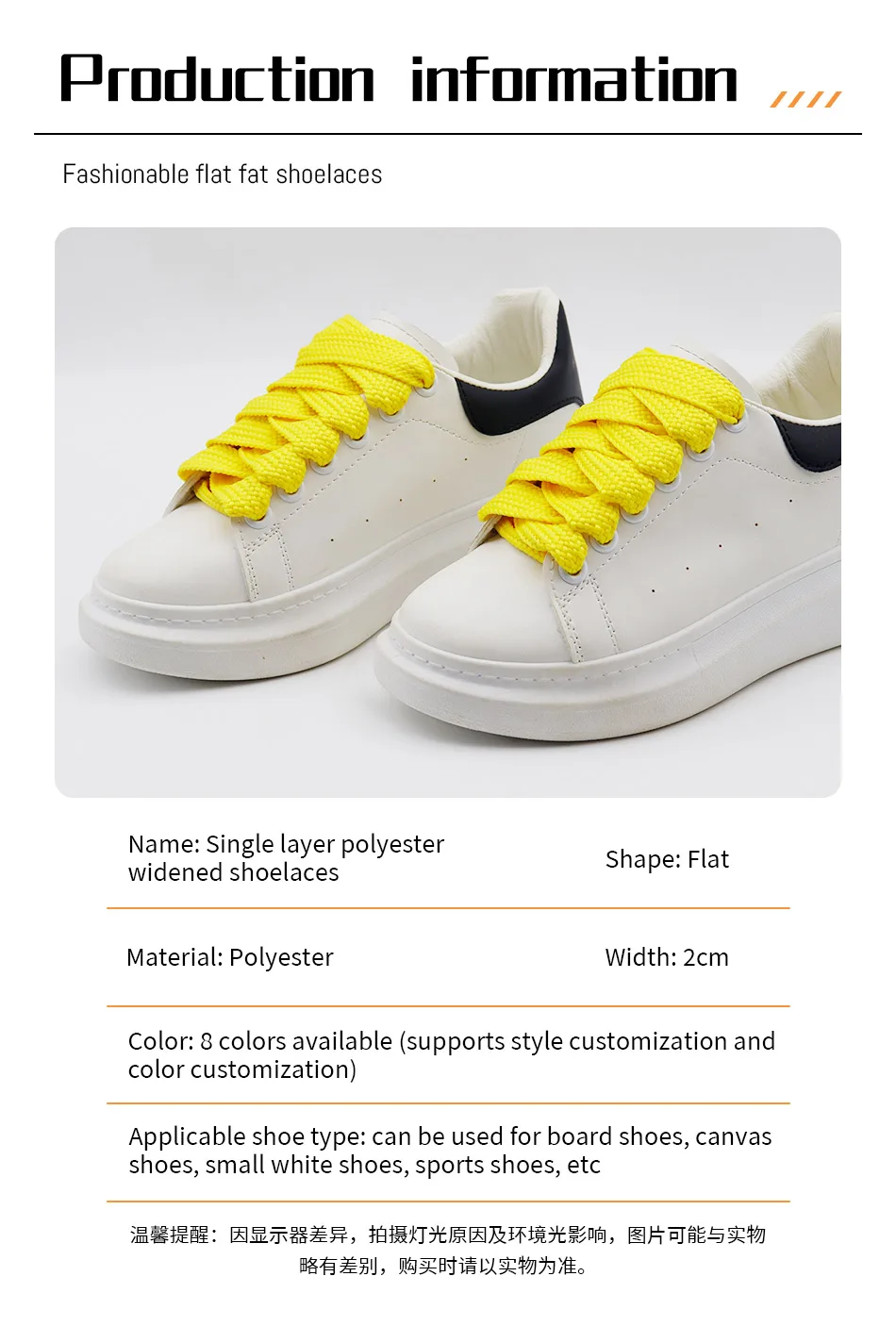 Weiou Laces 1 Pair of Widened Flat Single-layer Polyester Shoelaces 2cm 8 Colors Fashion Aglets Casual Sneaker Women Hoodie Cord