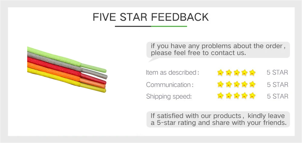 | -Customized for Yourself/Logo/Bulk Order ·We also could accept customised length and color according to your request as sample order,Please contact us for help. ·Support Printing Logo on the Plastic or Metal Aglets. ·If you want to make bulk order more than 50 pairs,Please contact us for a better price. |
