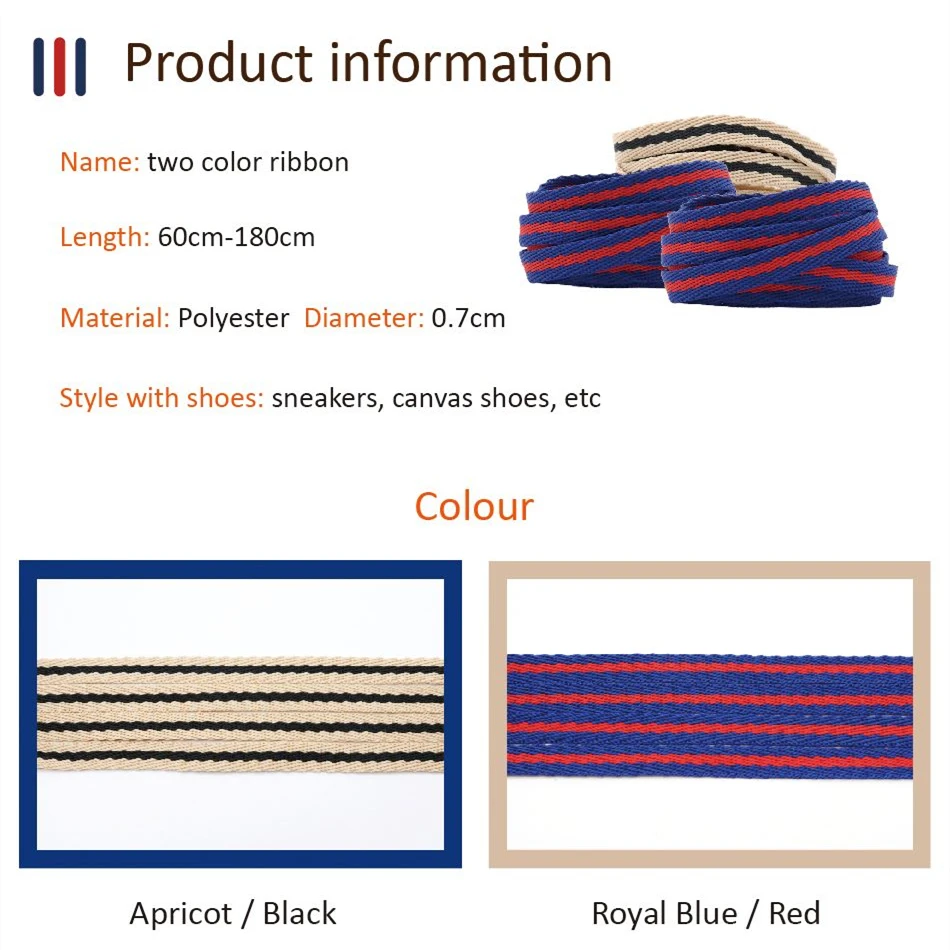Weiou Laces New 0.8 Cm Flat Two Color Stitched Polyester Shoelaces All Matched Women Men Children Canvas Sneakers Blue Apricot-1.Size