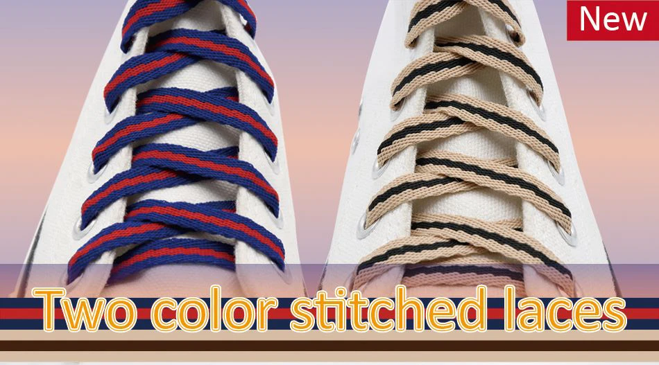 Weiou Laces New 0.8 Cm Flat Two Color Stitched Polyester Shoelaces All Matched Women Men Children