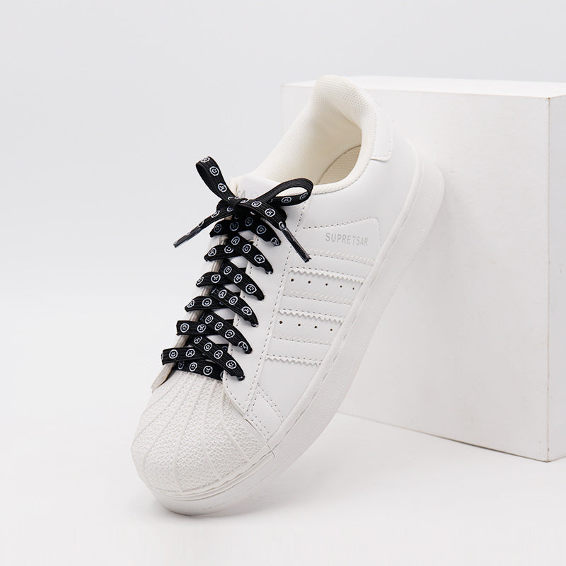 Weiou Manufacturer Shoe Accessories Printing Logo Black White Elastic Spring Shoelaces For Casual Shoes