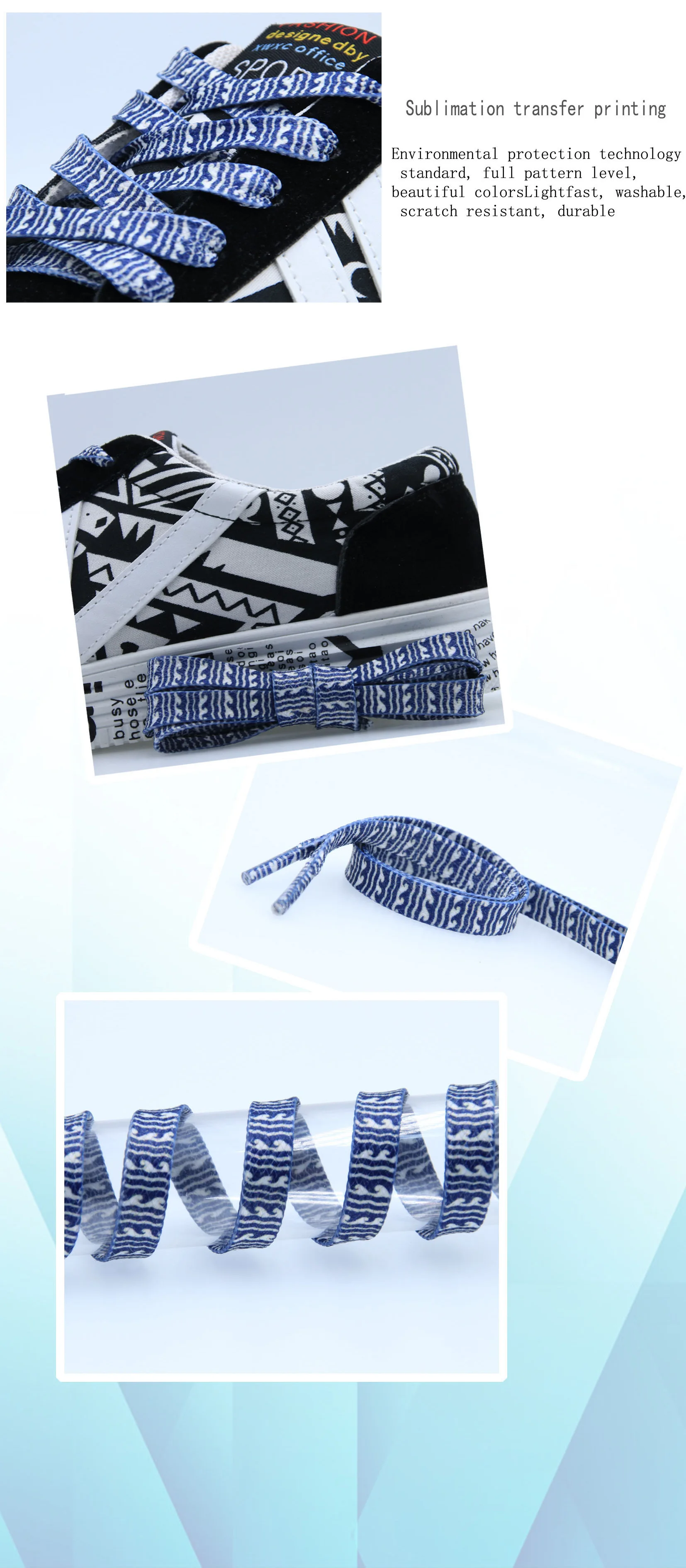 Weiou Mediterranean Style Shoelaces 8MM Flat Blue and White Wave Cotton Shoe Laces Best Gift For