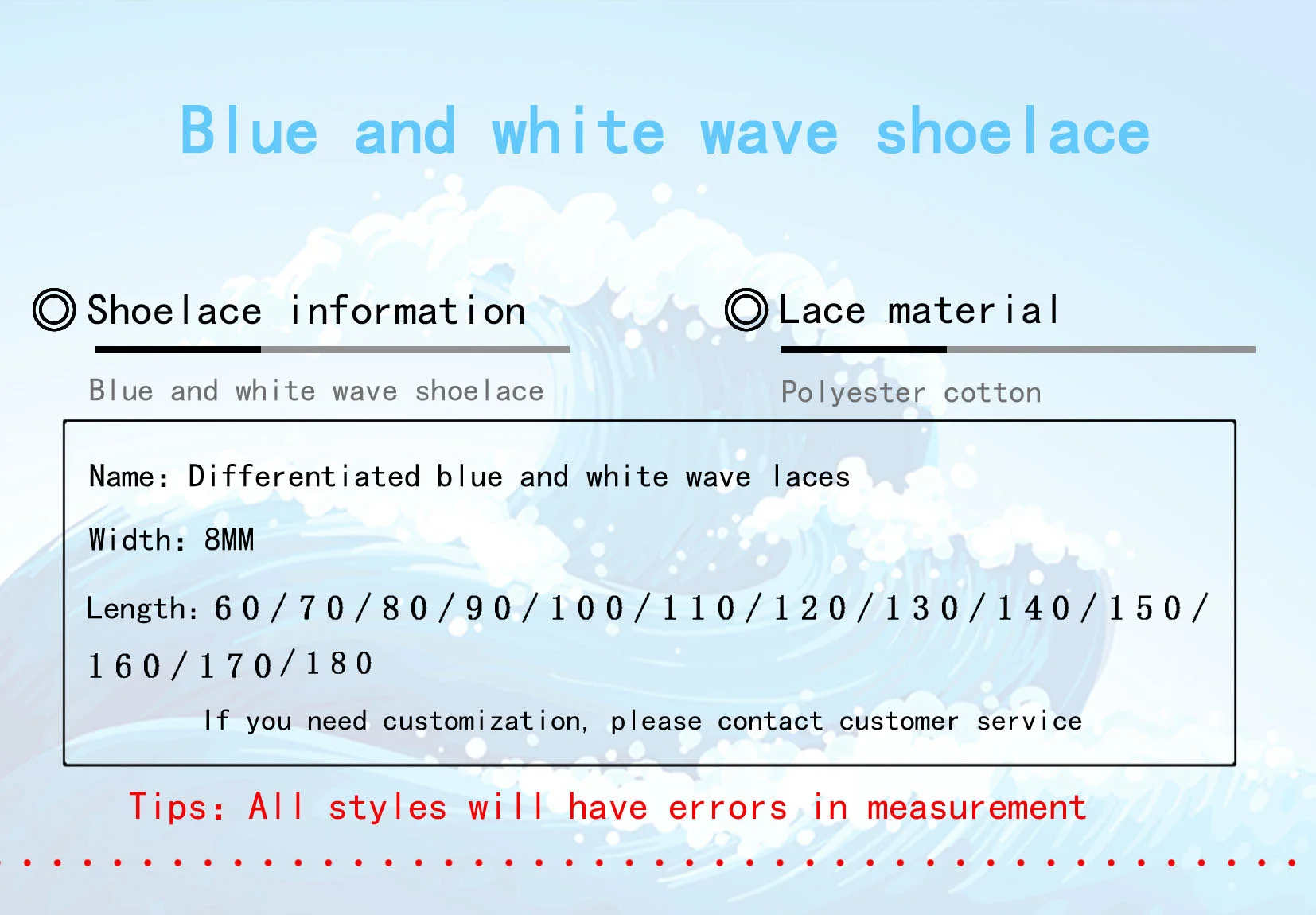 Weiou Mediterranean Style Shoelaces 8MM Flat Blue and White Wave Cotton Shoe Laces Best Gift For Canvas Casual Shoes1.Size: 60-180cm *8MM ;