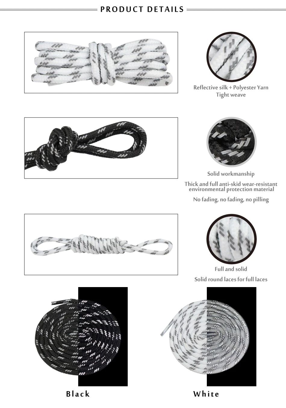 Weiou New 0.45CM Diameter Black And White Tricolor Reflective Polyester Shoelaces Women Men Children Running Sneakers Best Laces![]() ![]() ![]() ![]()