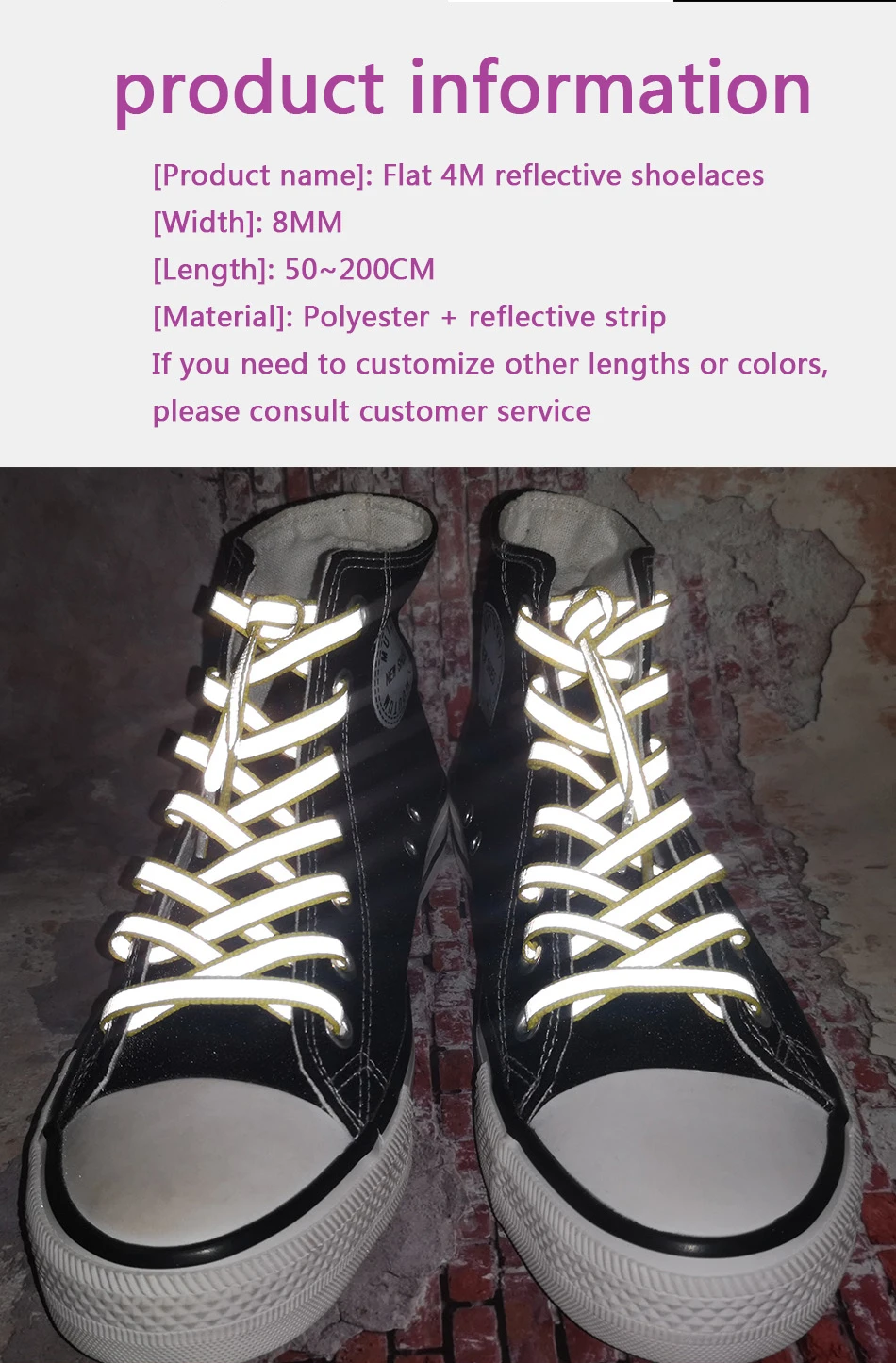 Weiou New 8mm Flat Classical 4M Reflective Shoelaces Couple's Sports Sneakers Canvas Boots Shoe Laces Night Running Safety Laces![]() ![]() ![]()