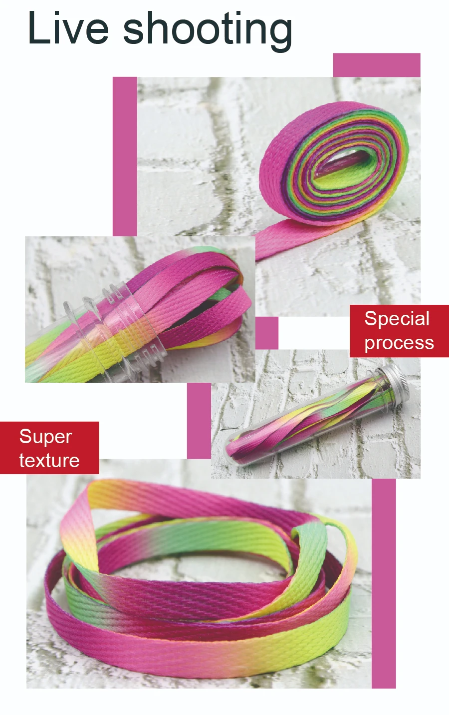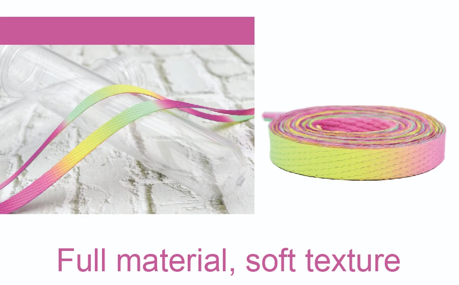 Weiou New Adorable Rainbow 4 Colors Shoelaces 0.8 Cm Flat Attractive Women's Shoe Laces For Canvas Fabric Sneakers Hat Ropes1.Size: 60-180cm *8MM ;
