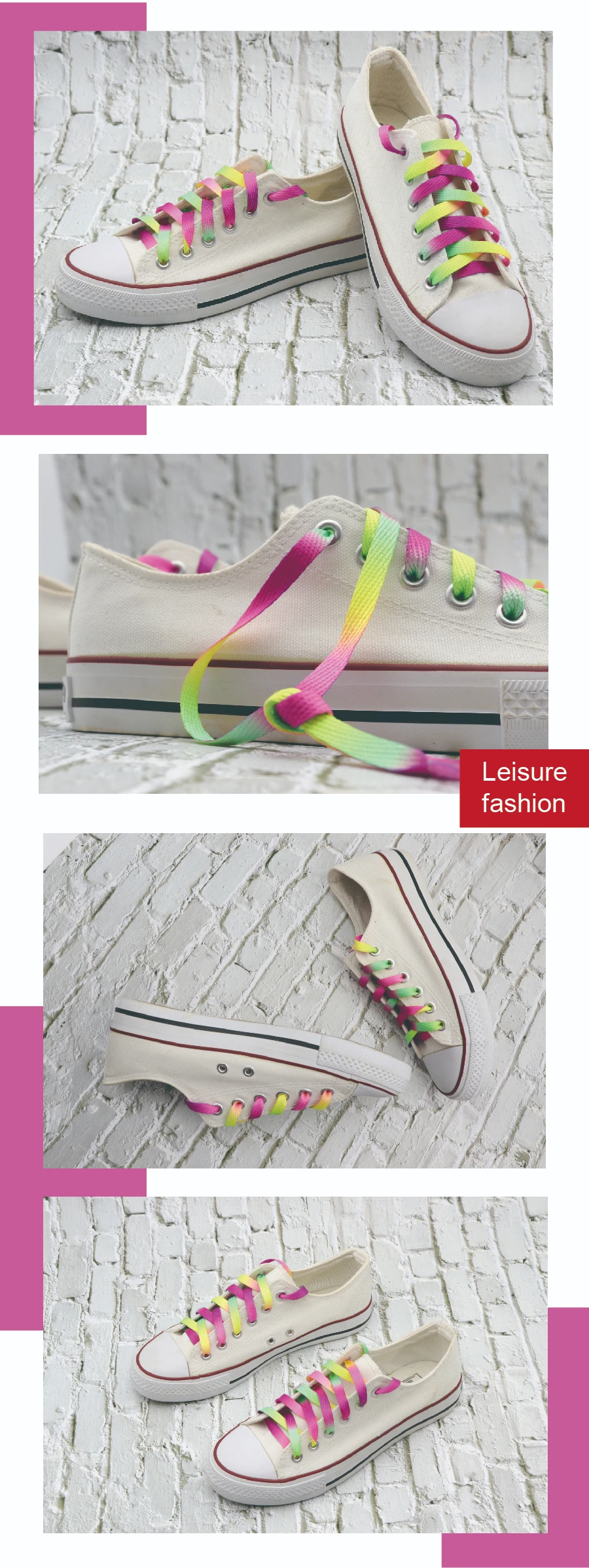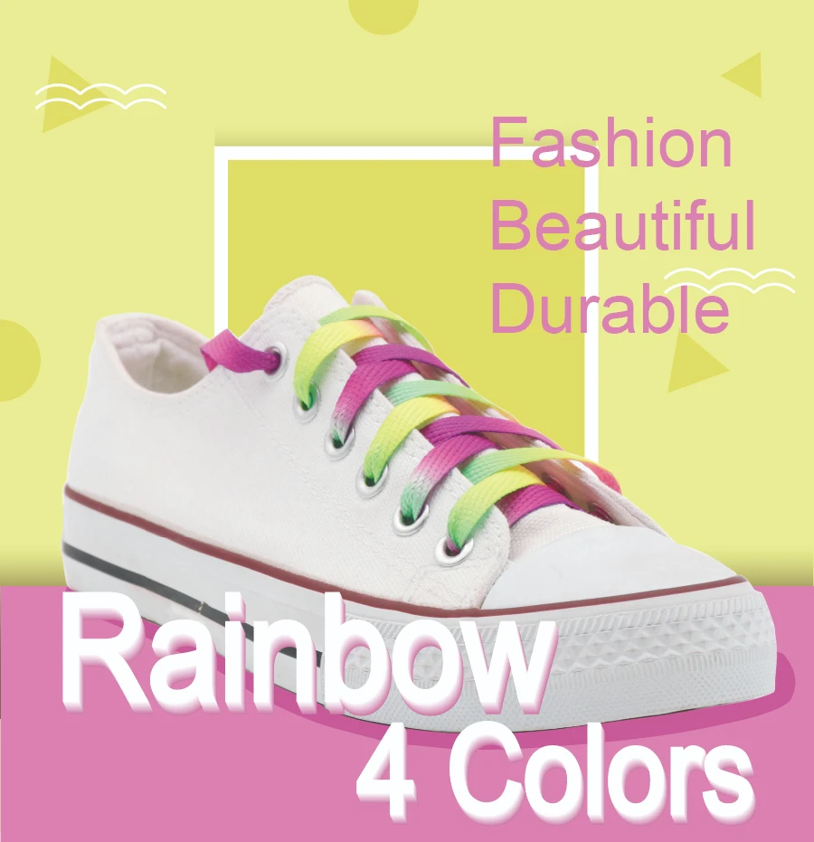 Weiou New Adorable Rainbow 4 Colors Shoelaces 0.8 Cm Flat Attractive Women's Shoe Laces For Canvas